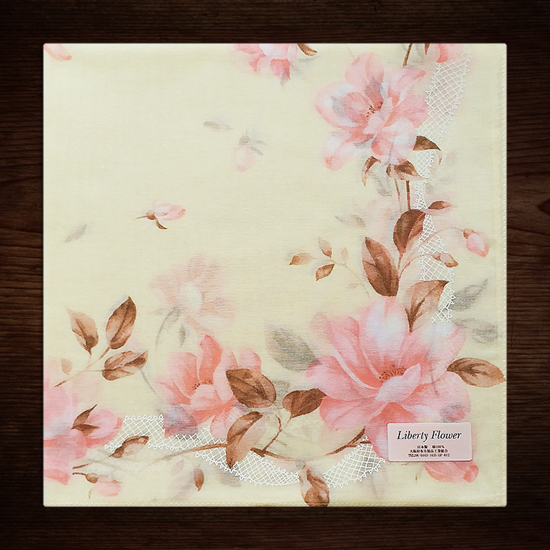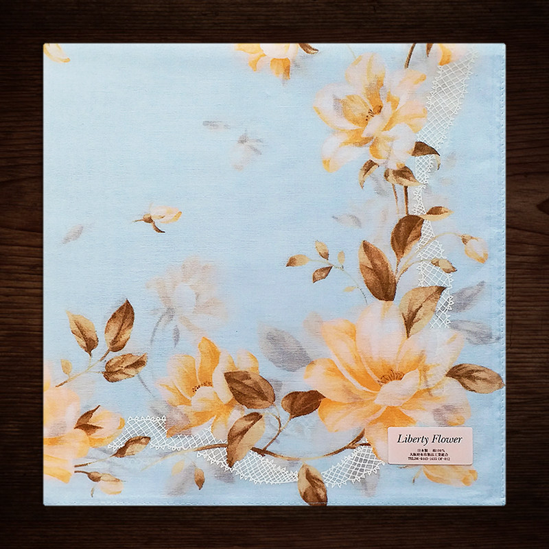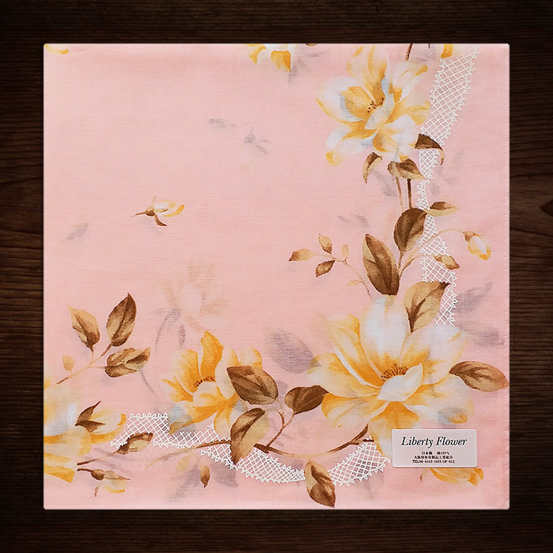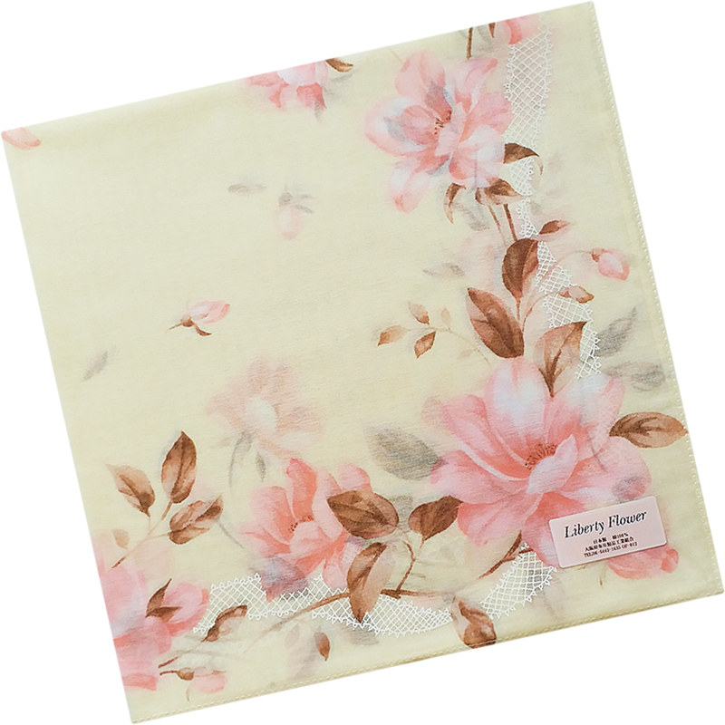 日本制造薄款 女士手帕纯棉吸汗全棉女手绢优雅玉兰花方巾印花手巾