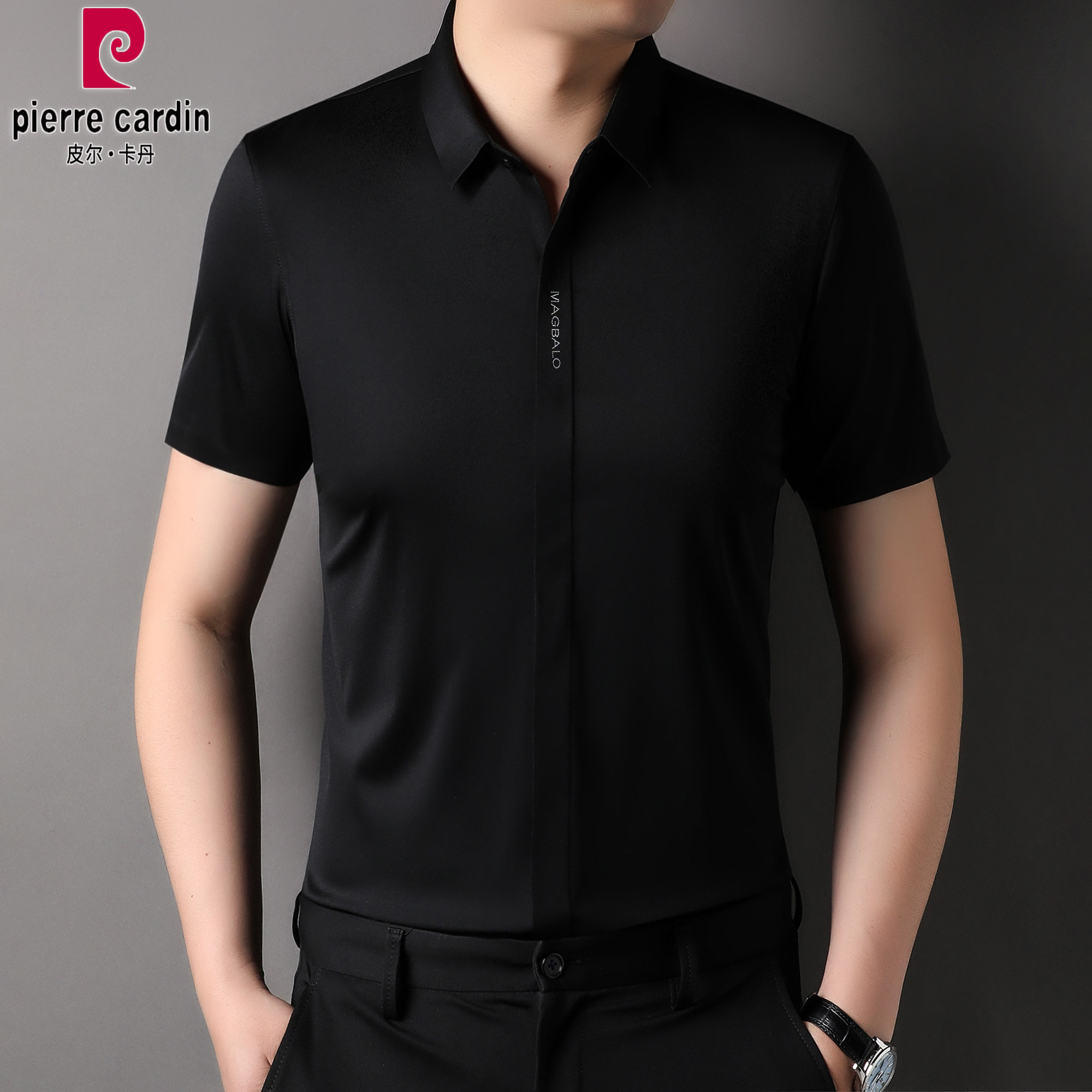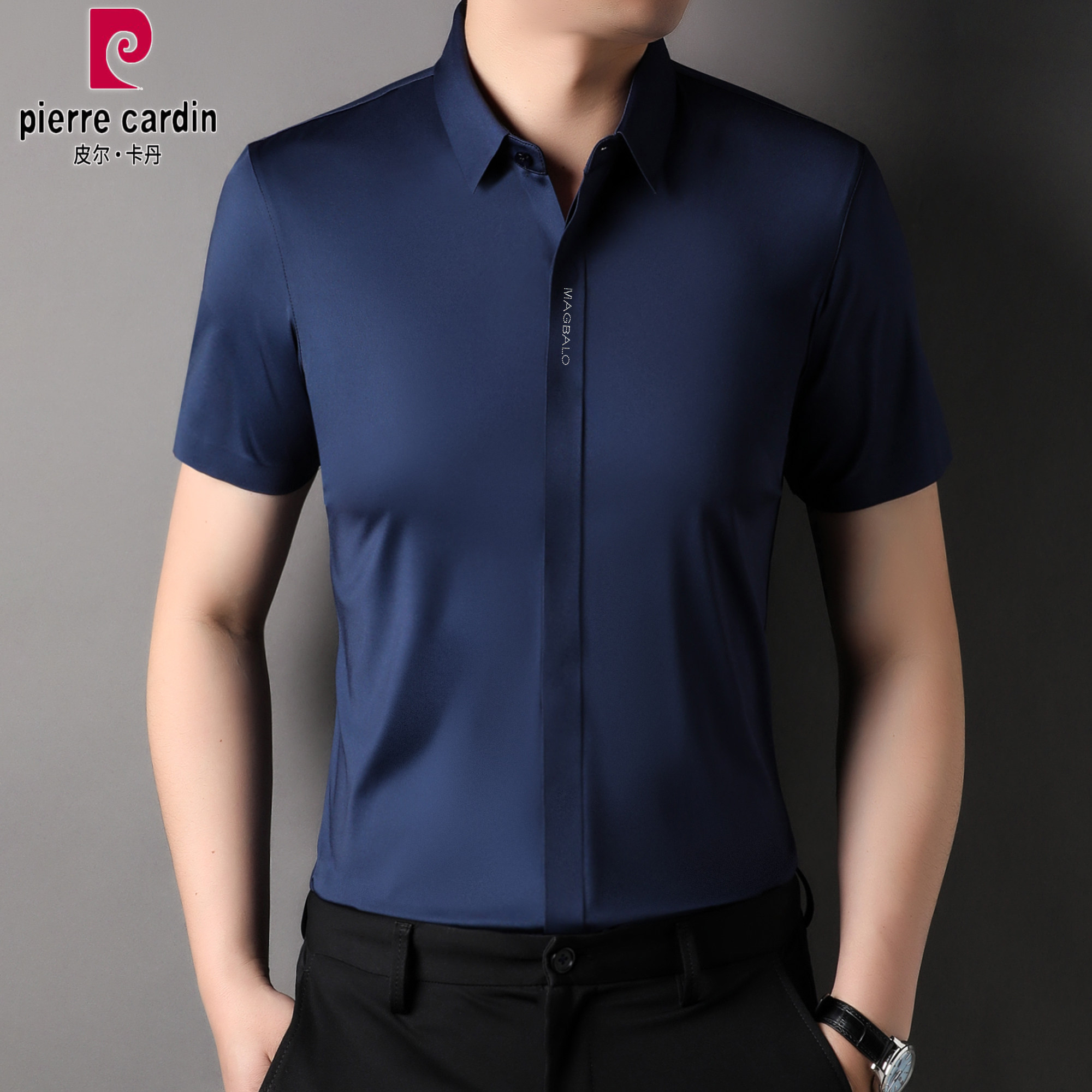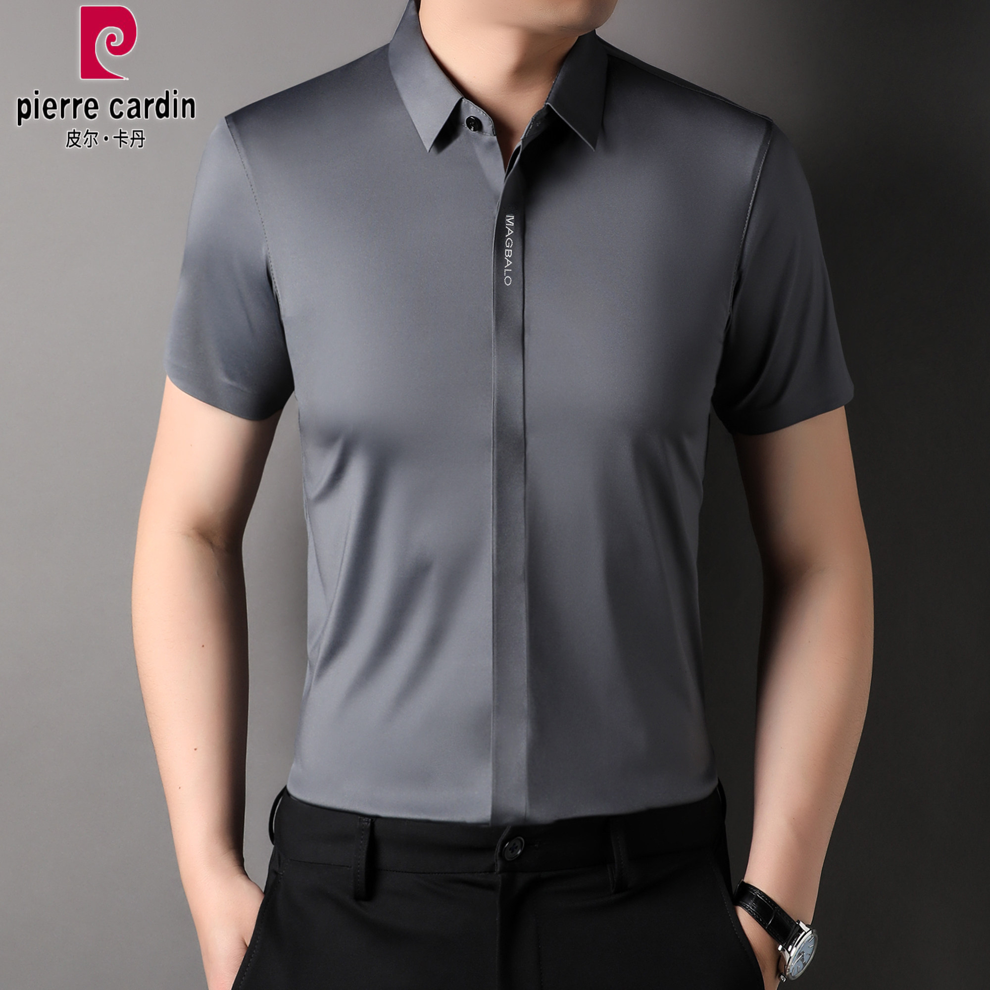 抗皱商务休闲大码 皮尔卡丹夏季 弹力衬衣 衬衫 冰丝半袖 免烫男士 短袖