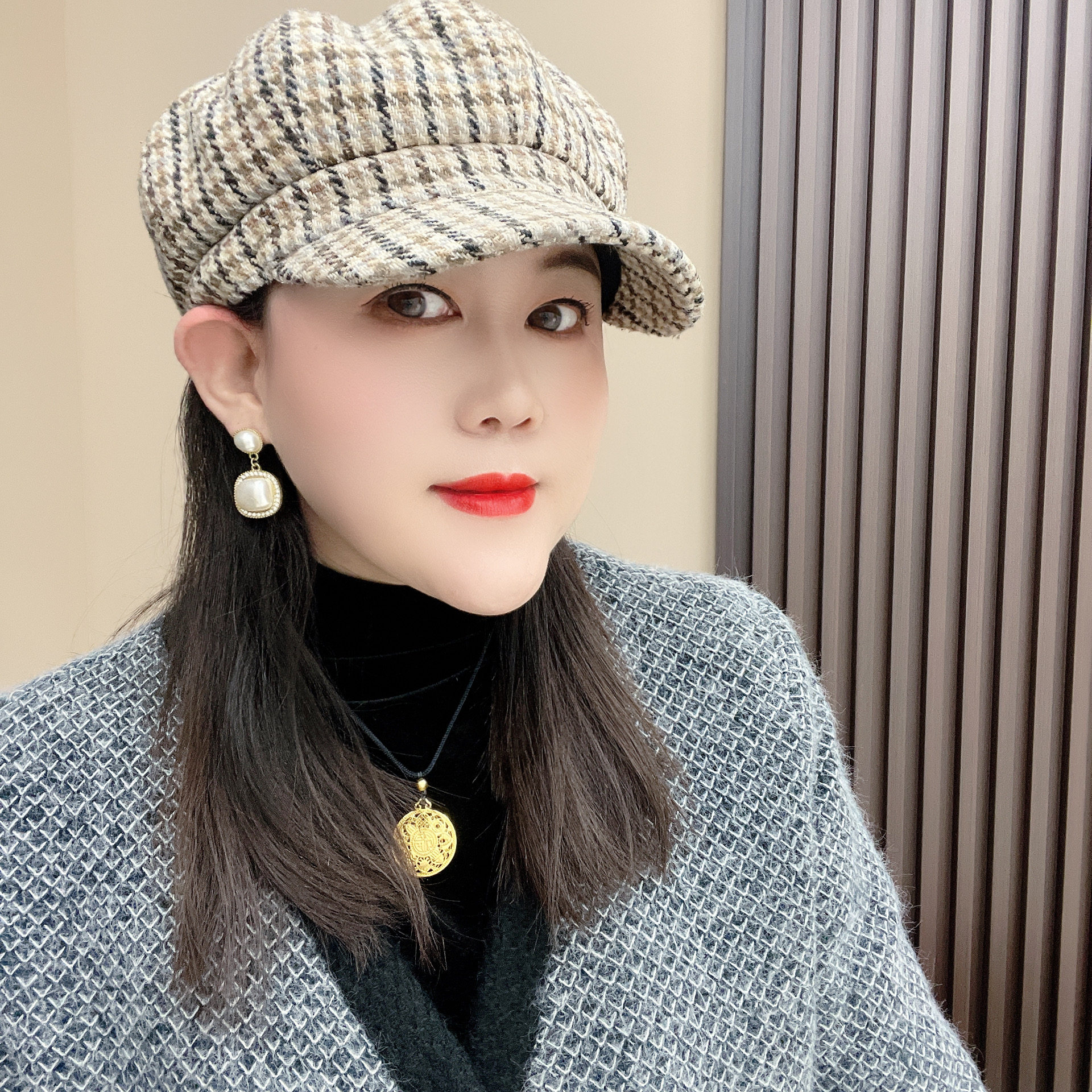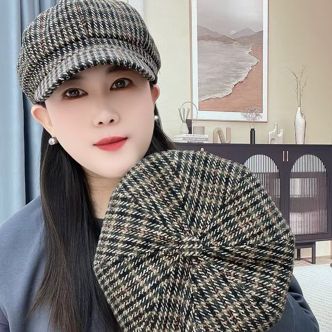 春秋冬可戴百搭加厚八角帽韩版 可调节 潮流英伦风帽子有调节绳