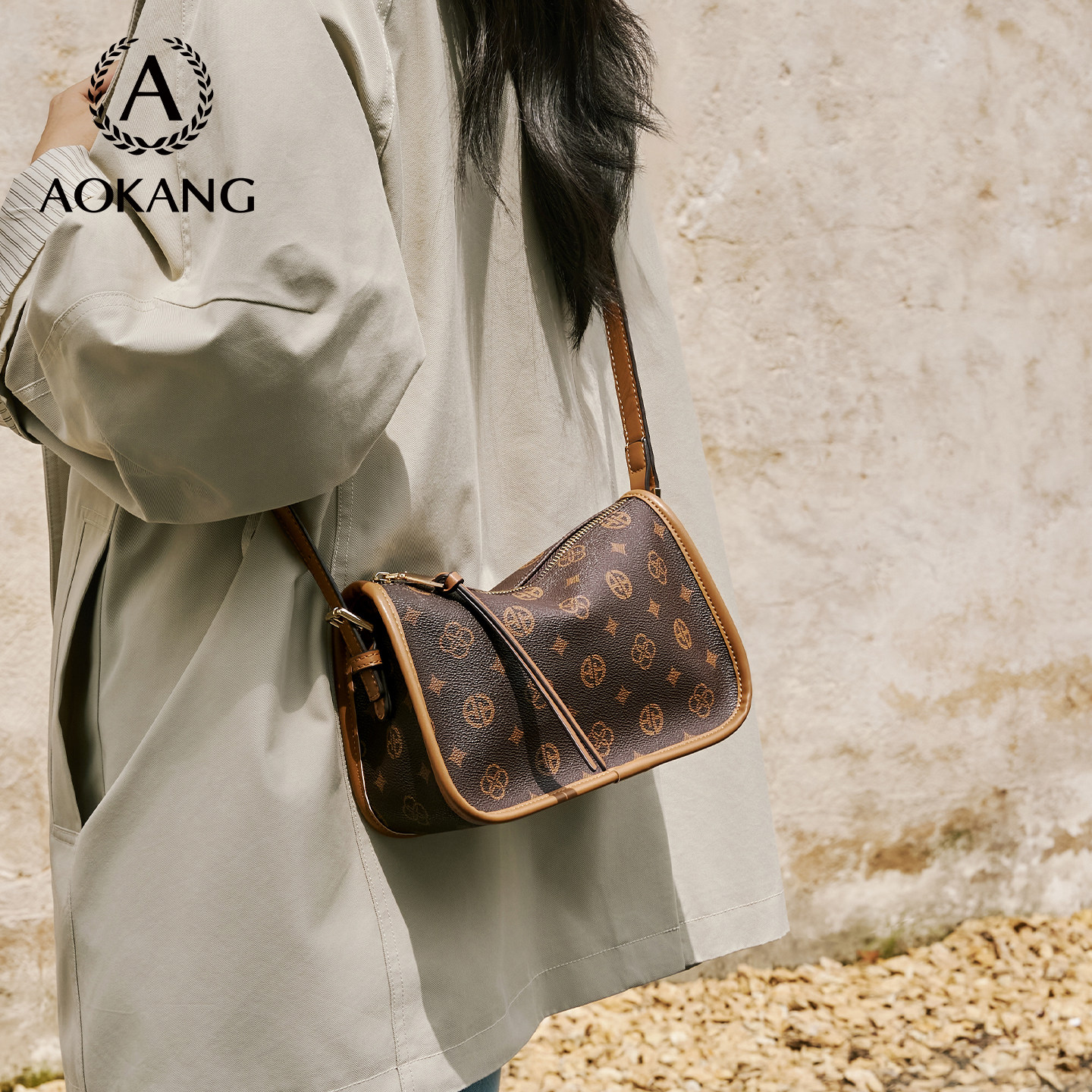 奥康枕头包女2026新款 包包大容量单肩包老花腋下包高级通勤斜挎包