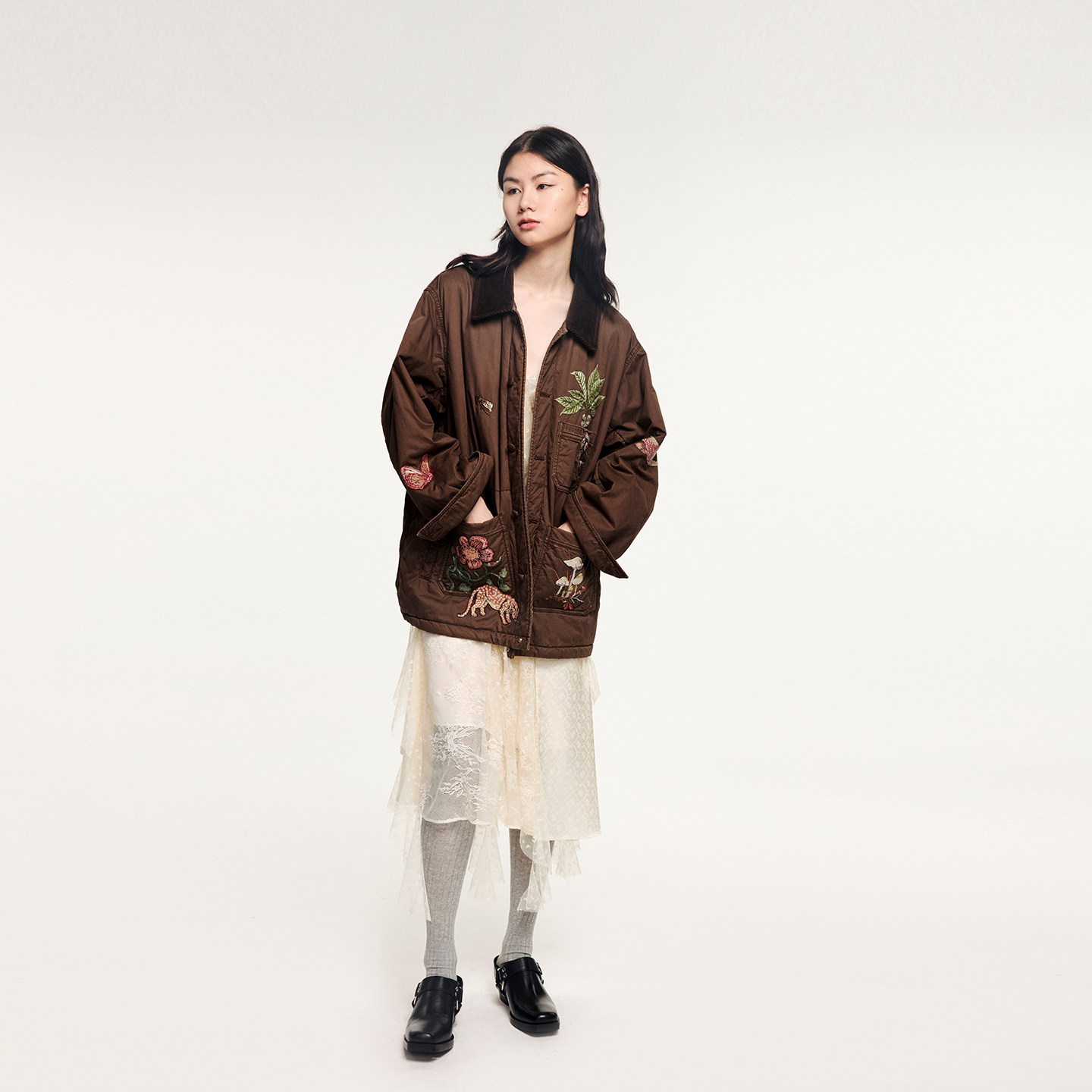 新款 UOOYAA 乌丫2025冬季 「魔法花园」钉珠刺绣法国工会棉夹克