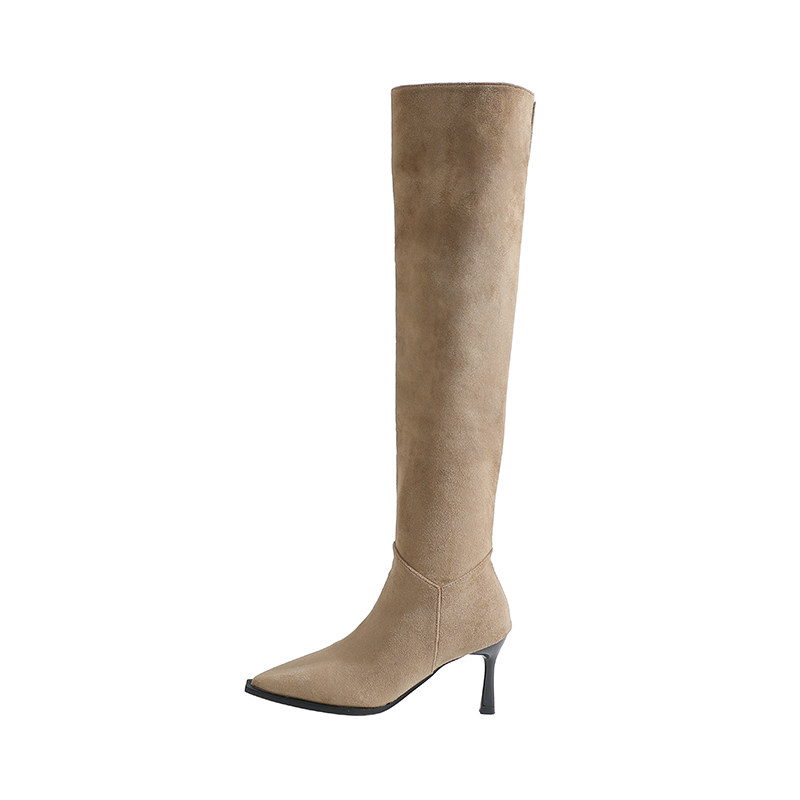 真皮 骄屿过膝长靴2025秋冬新款 细高跟两穿褶皱堆堆靴翻折长筒靴