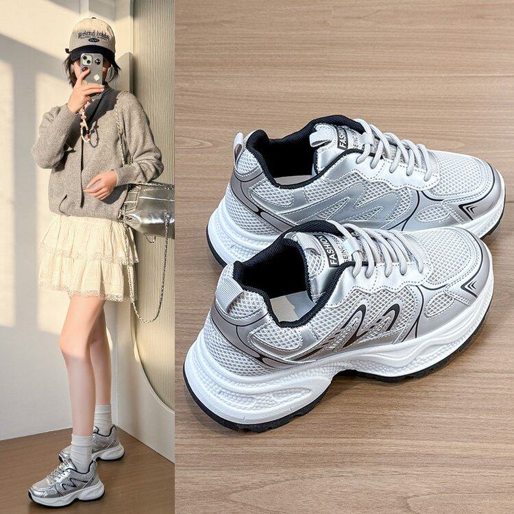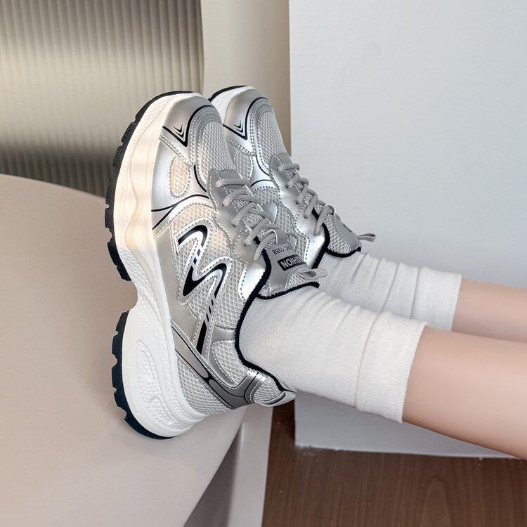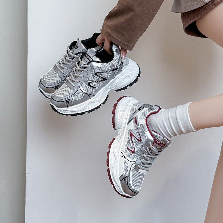 百搭厚底防滑休闲运动鞋 2025春季 女爆款 时尚 新款 透气酒红色老爹鞋