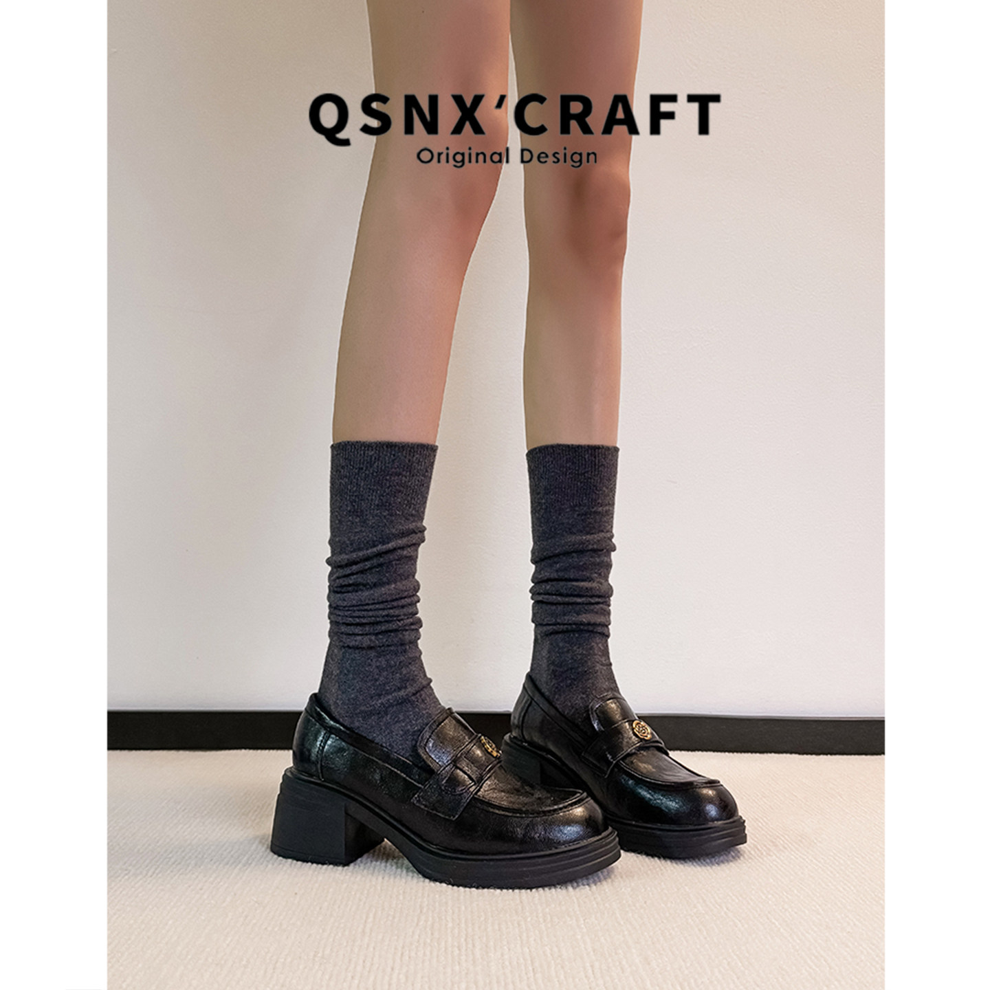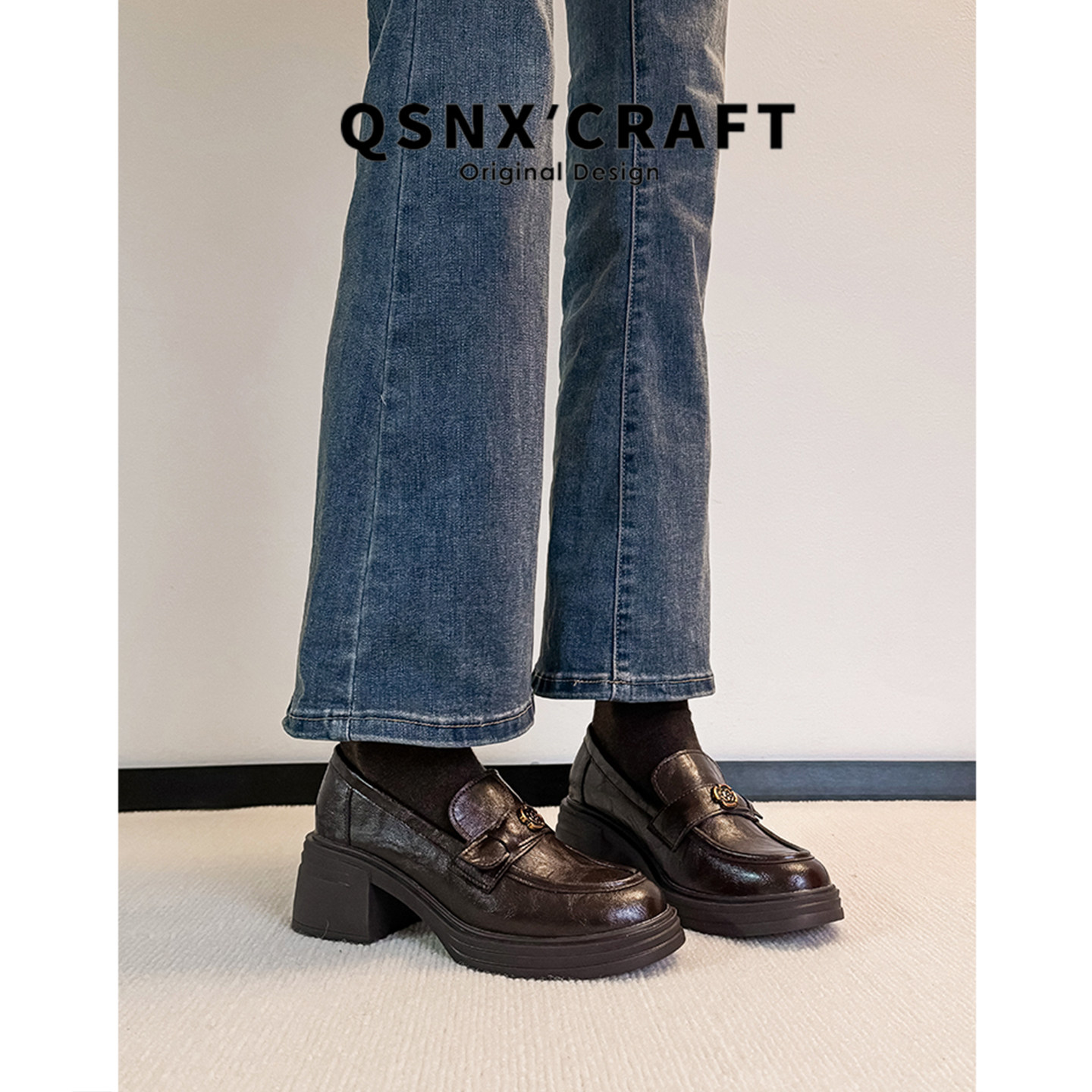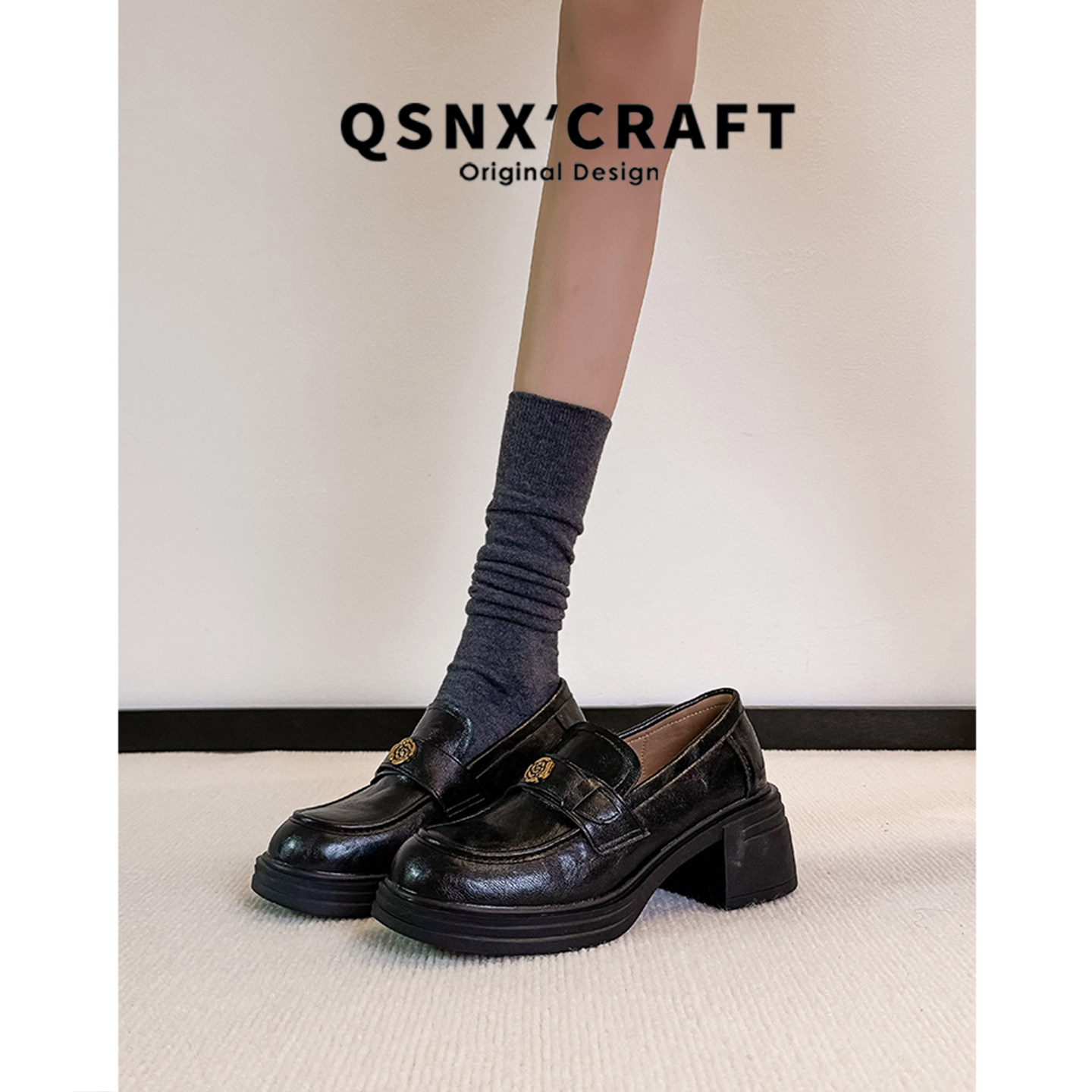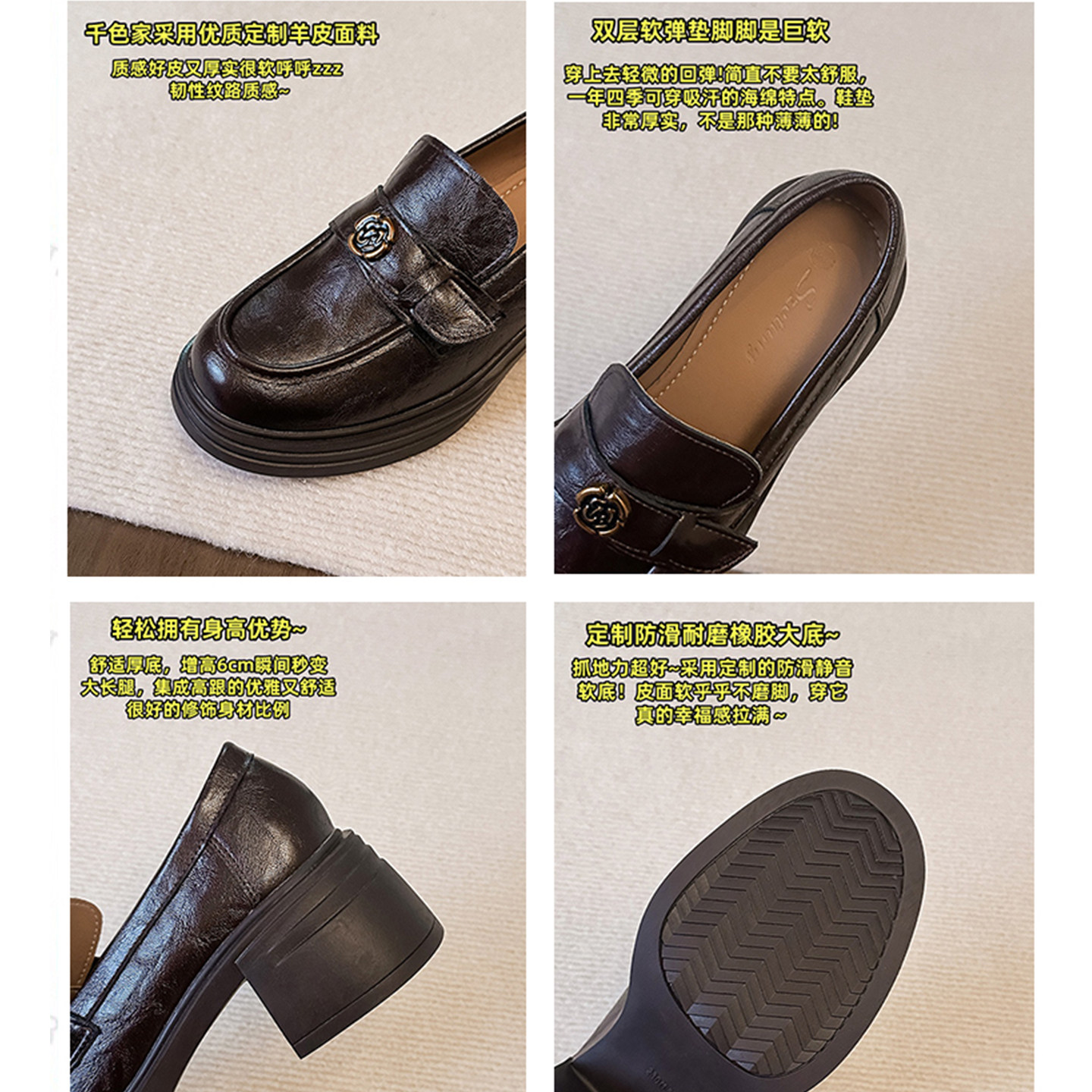 羊皮版 子 金属扣复古粗跟通勤小皮鞋 英伦风厚底乐福鞋 女2025新款