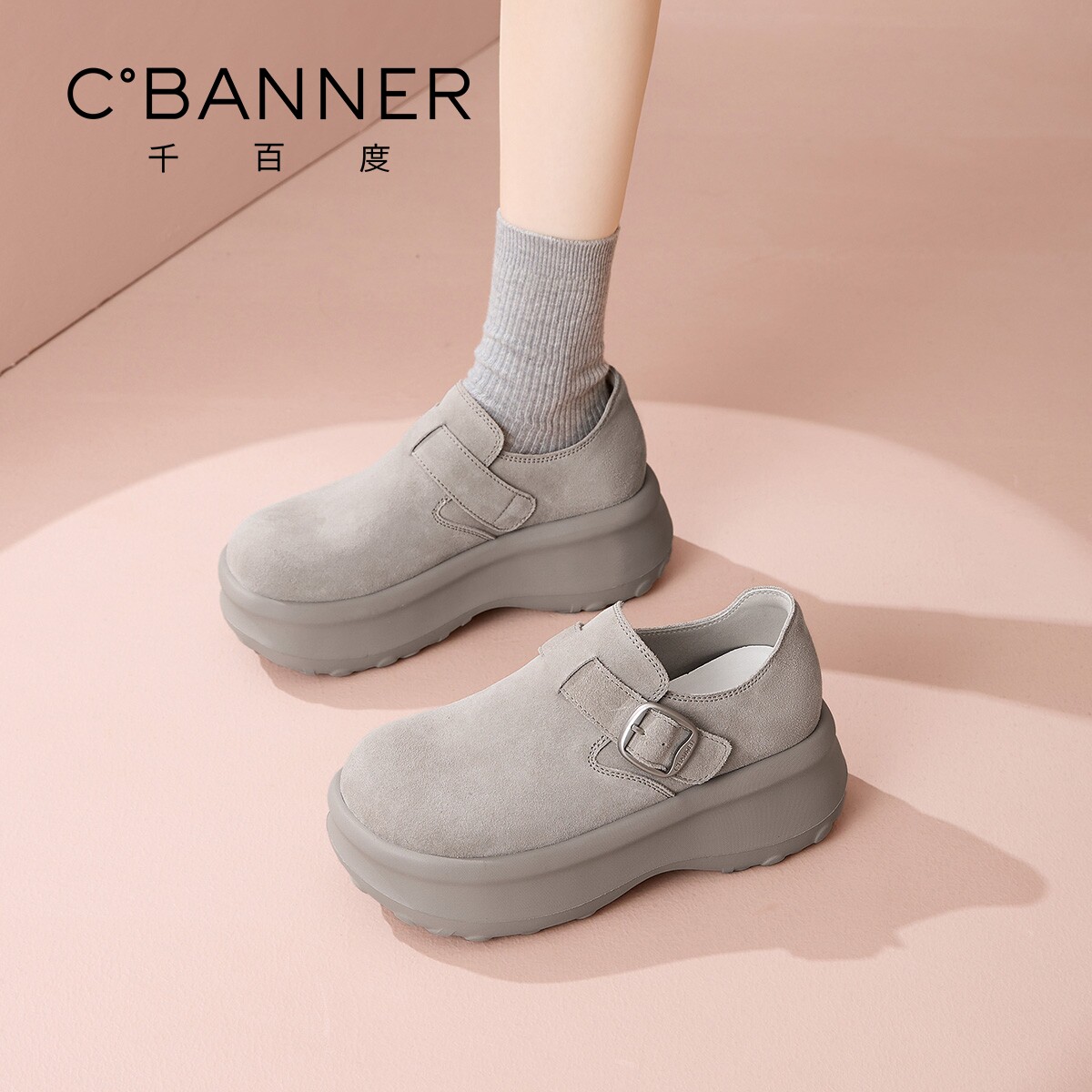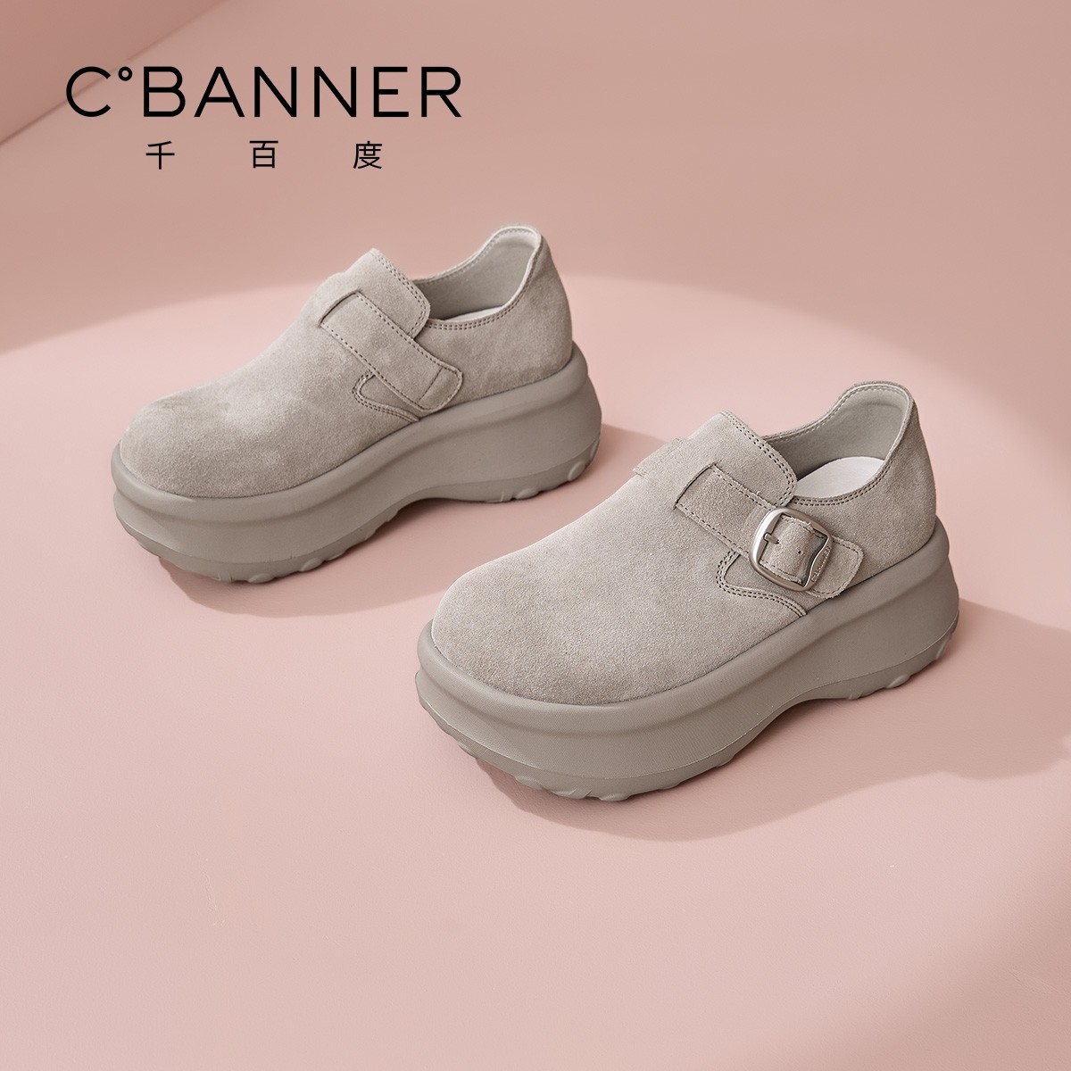 女2026春季 新款 百搭增高小个子单鞋 千百度厚底勃肯鞋 复古乐福鞋 女