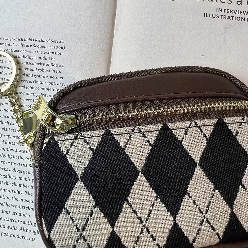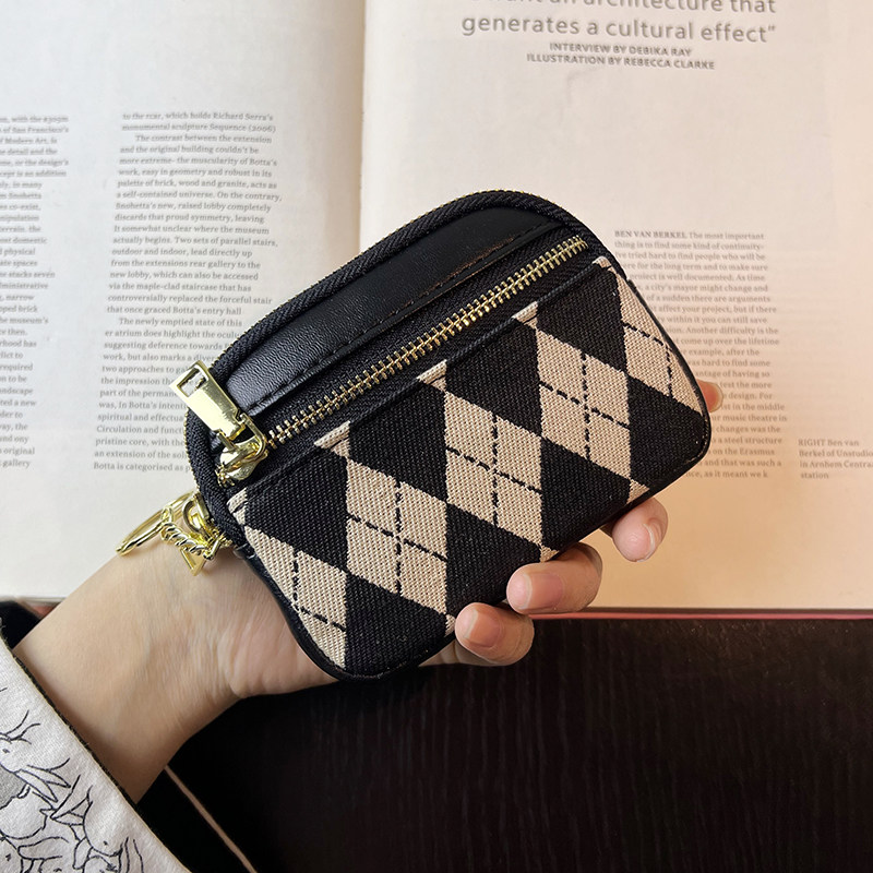 小众手拿拉链菱格零钱包女小巧迷你小包收纳硬币钥匙包卡袋证件包