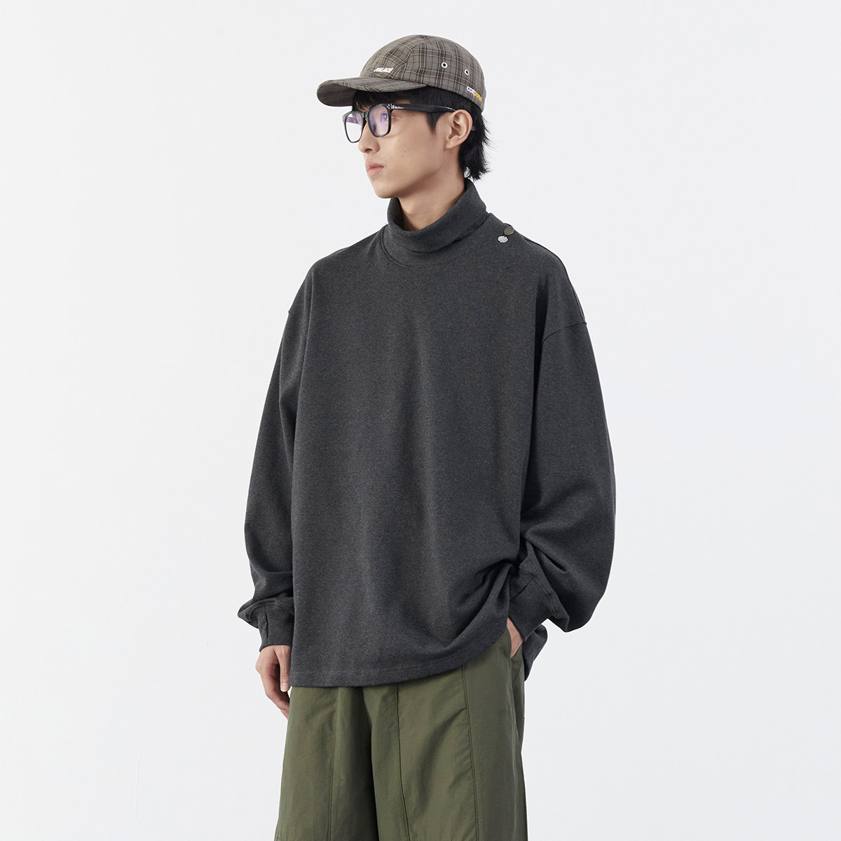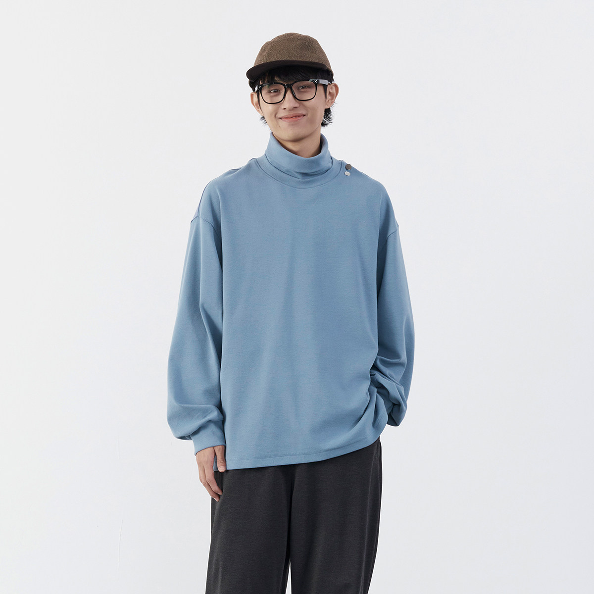 垂坠感纯色打底衫 Mentmate 秋冬松弛感叠穿半高领亲肤阔袖 卫衣男