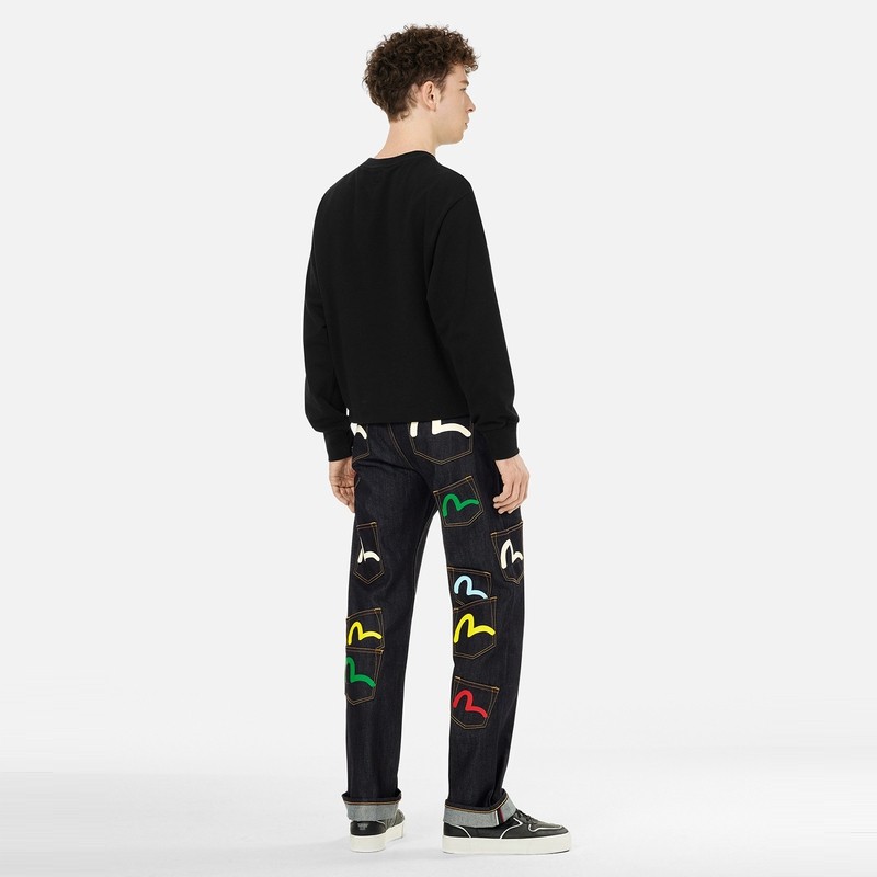 EVISU 海鸥印花口袋潮流休闲标准直筒牛仔裤 冬季 男士