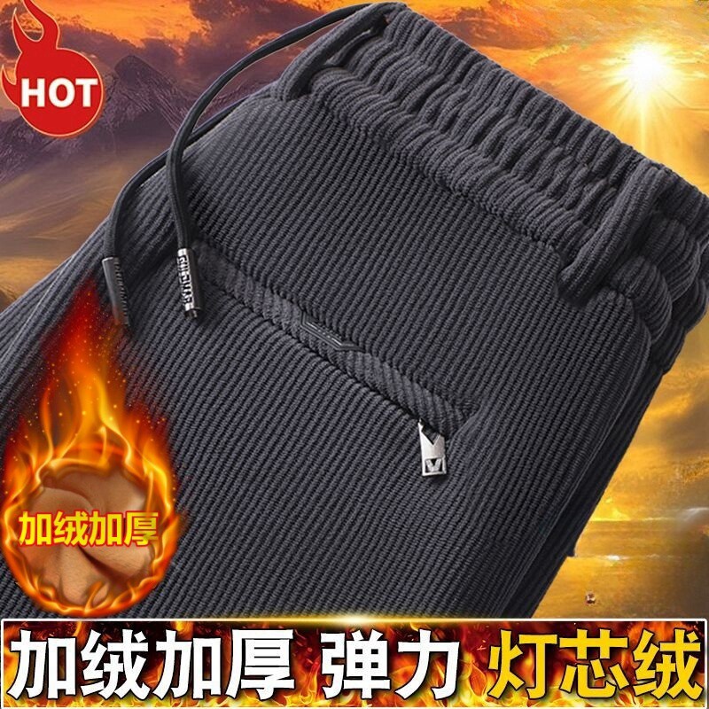 高档宽松大码 灯芯绒裤 加绒加厚 潮流秋冬季 爸爸休闲长裤 子男士 韩版