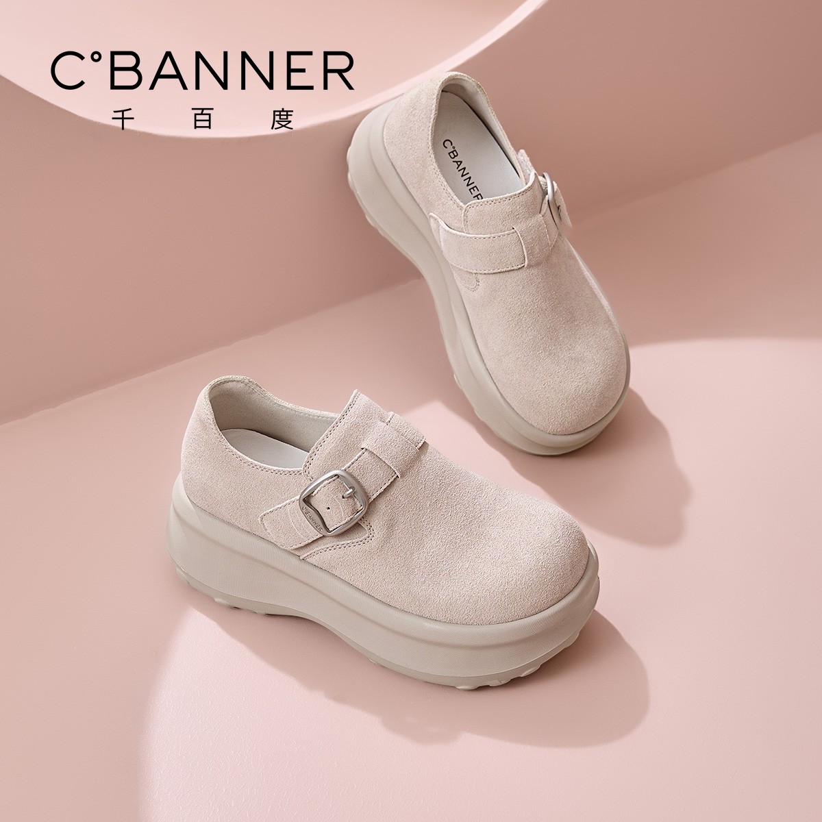 女2026春季 新款 百搭增高单鞋 千百度厚底勃肯鞋 休闲搭扣乐福鞋 女
