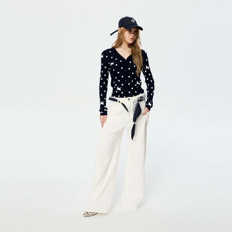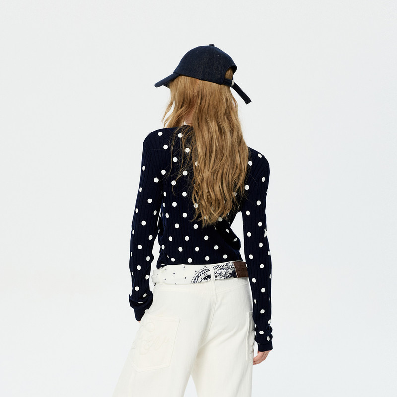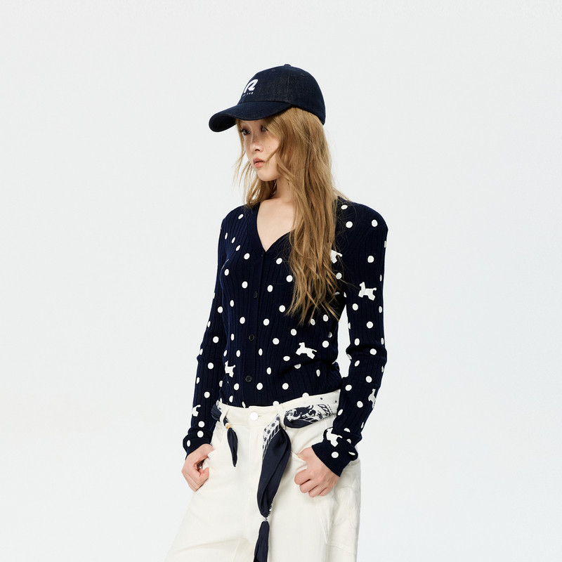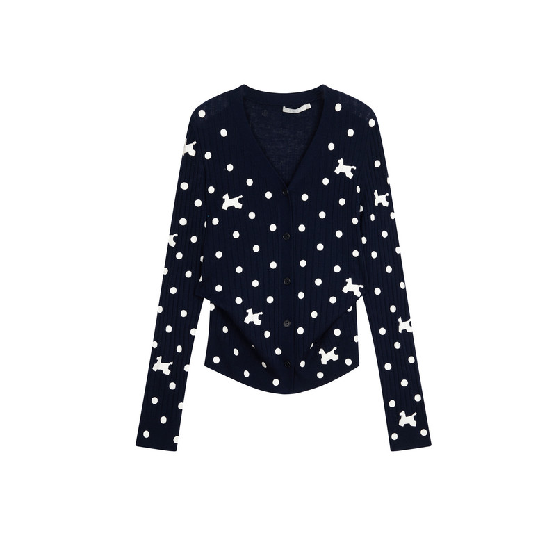 REVAN芮范设计师款 复古感波点小狗印花毛衣短开衫 RK12801263