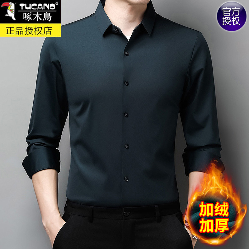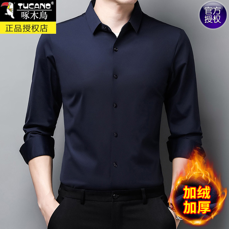 保暖衬衫 男士 长袖 啄木鸟秋冬款 寸衫 加绒加厚免烫抗皱无痕衬衣纯色