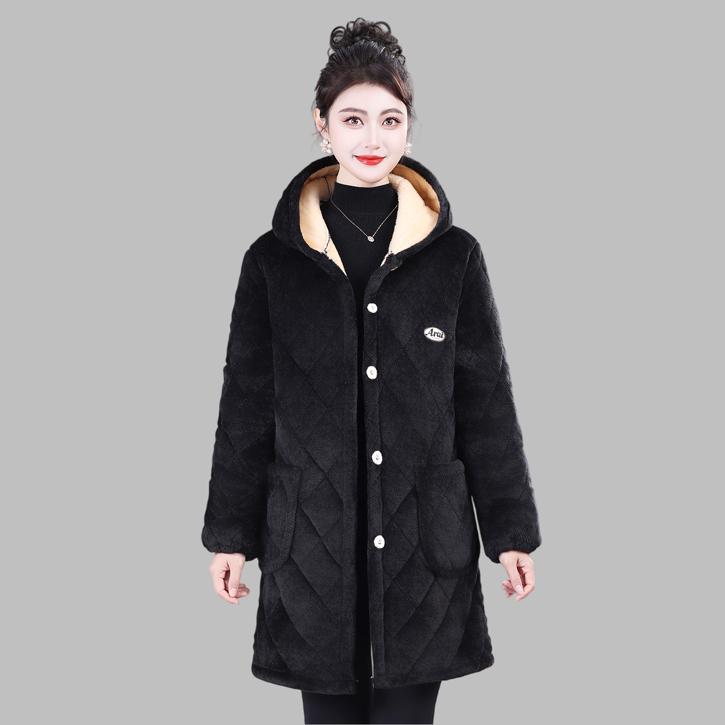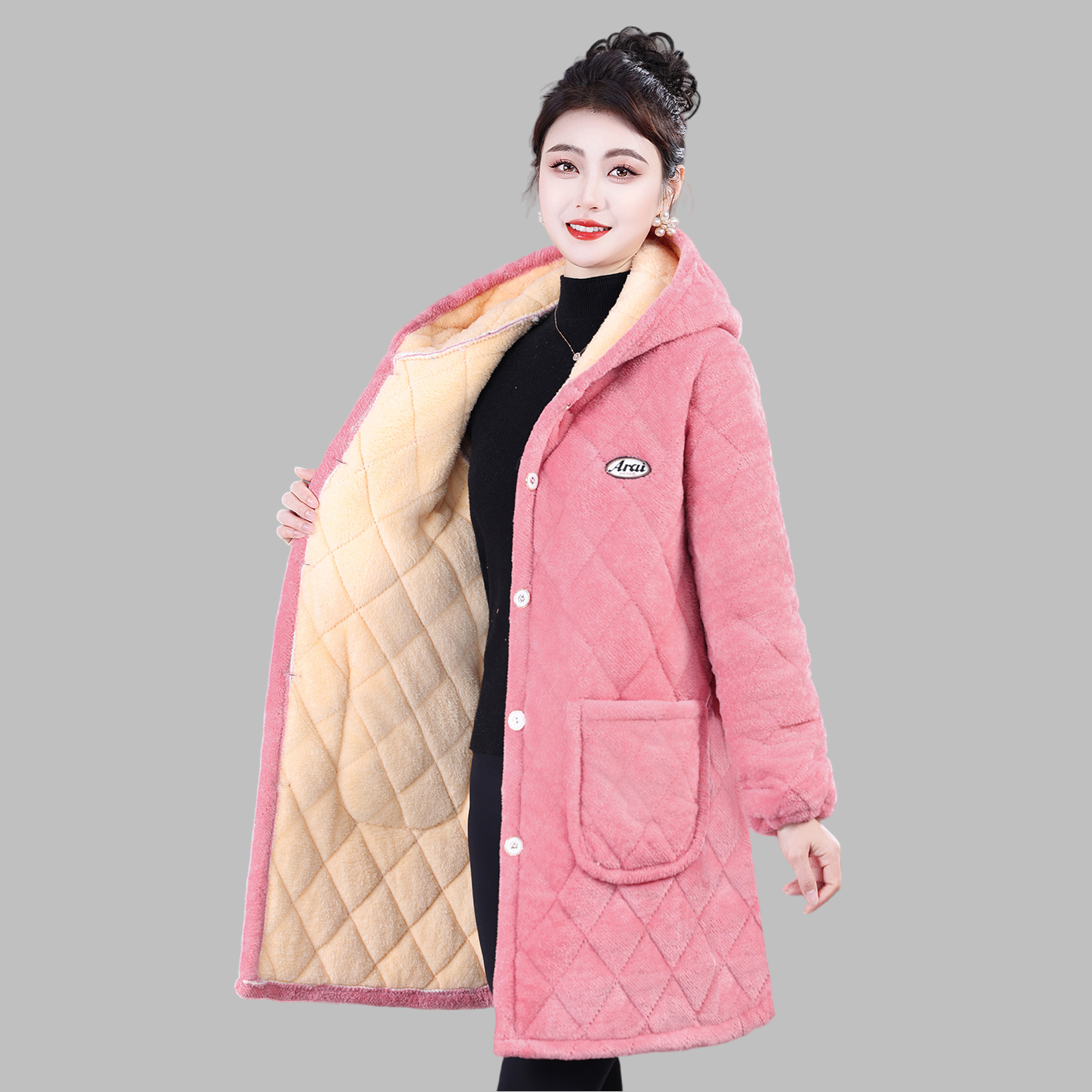 2025新款 棉袄加绒加厚 外套妈妈装 女棉衣秋冬款 保暖罩衣宽松中长款
