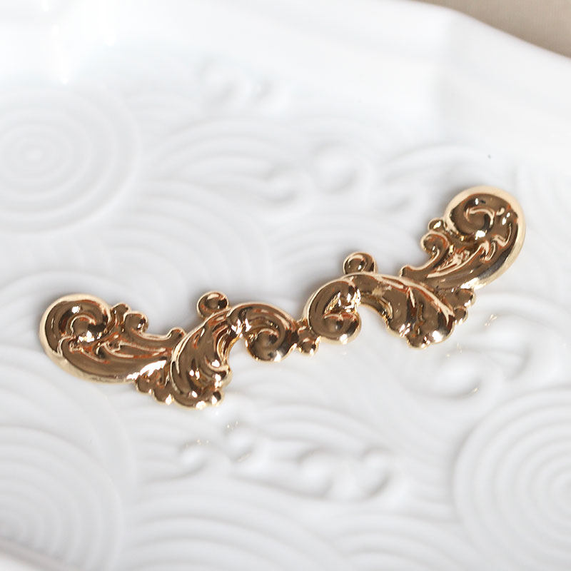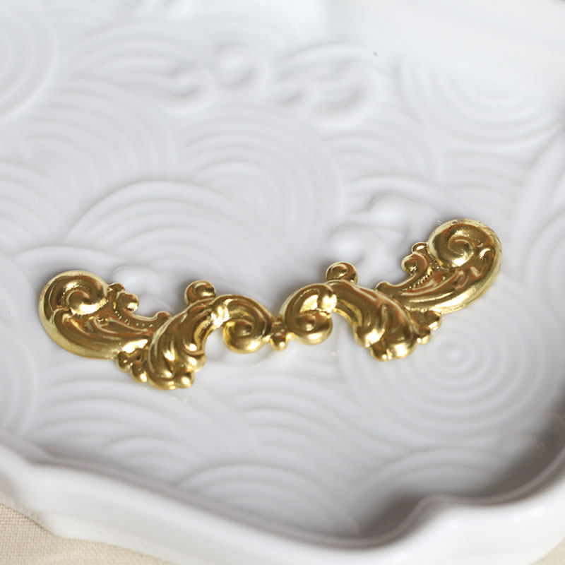 古风步摇发簪DIY配件头饰饰品材料 黄铜海浪花纹花片62 17mm金色