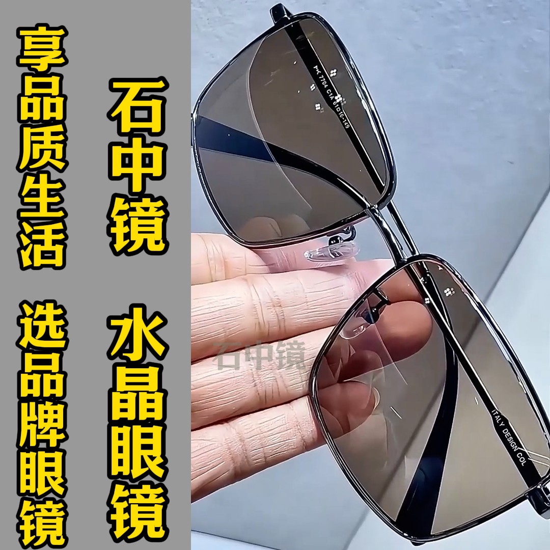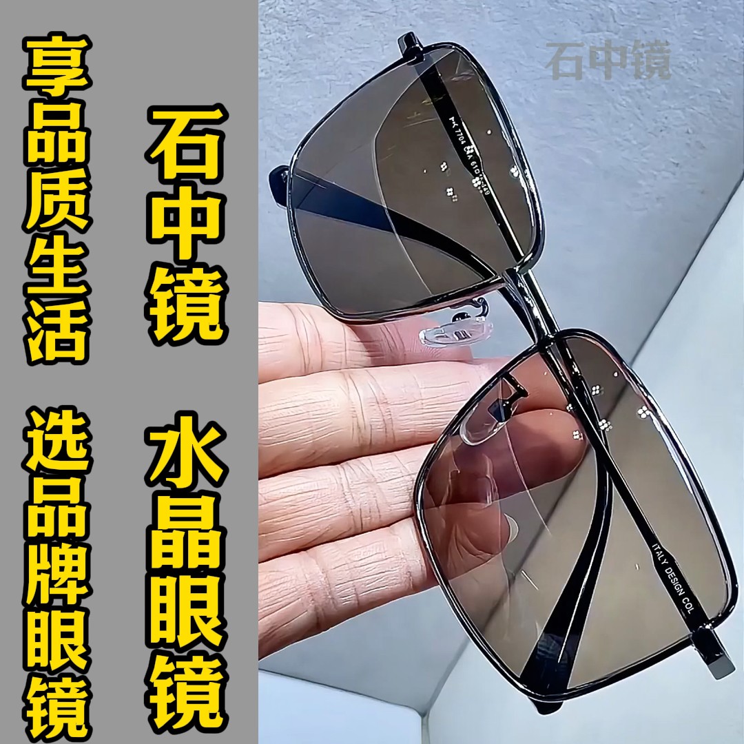 纯水晶石眼镜水晶石太阳镜司机开车镜超清晰清凉护目养眼方框墨镜