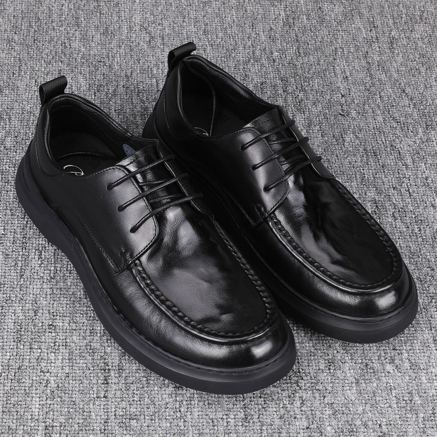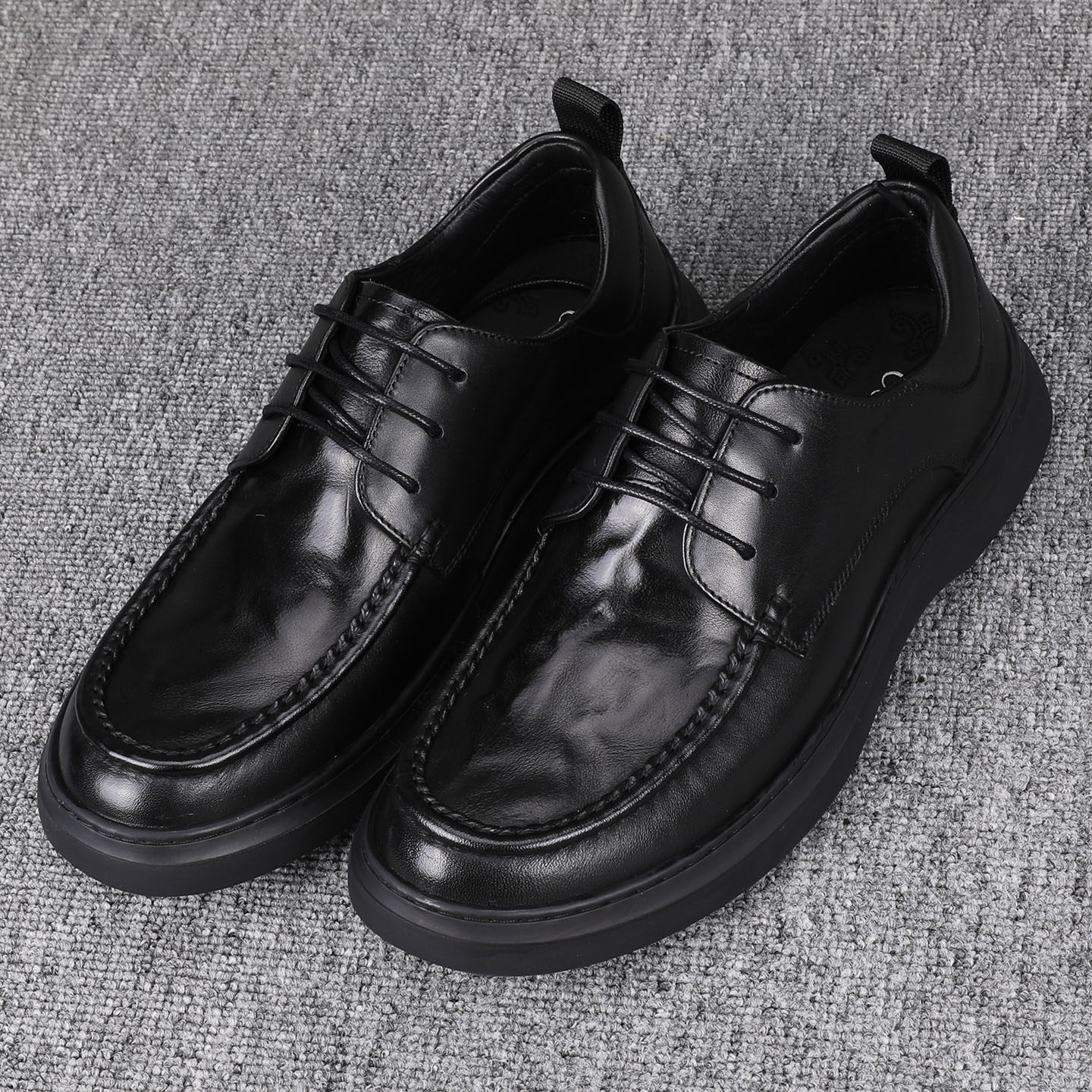 男士 2025新款 头层牛皮系带时尚 广州纯皮商务休闲皮鞋 手抓纹乐福鞋