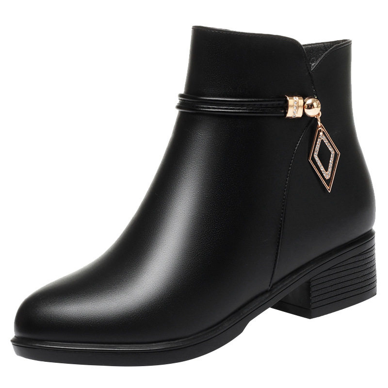 棉鞋 2025新款 中老年女鞋 妈妈鞋 舒适秋冬皮鞋 加绒短靴百搭软底靴子