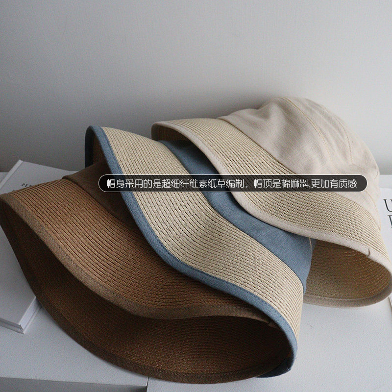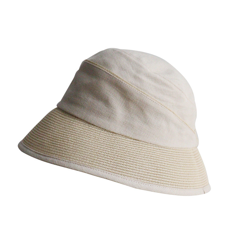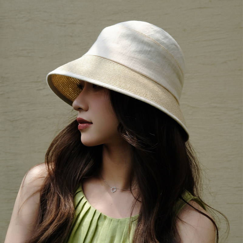 春夏季 日系透气亚麻渔夫帽轻薄优雅圆顶太阳帽草编遮阳防晒遮阳帽