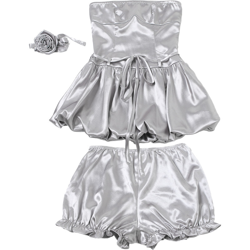 SylCue 法式 辣妹风亮面性感裹胸连衣裙女后腰显瘦露背吊带裙子A型