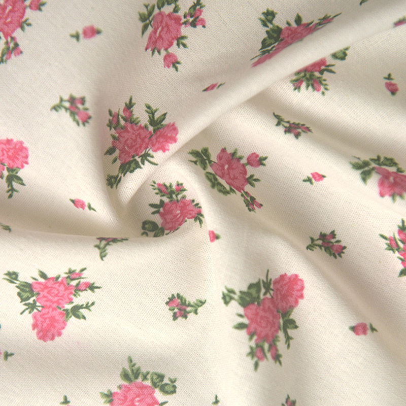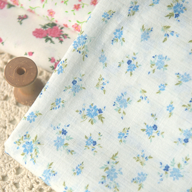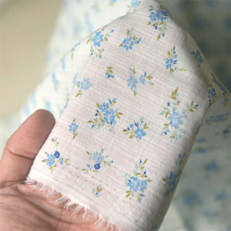 米白底蓝玫红小花簇竹节棉麻娃衣衬衫 连衣裙子童装 发圈饰品面料