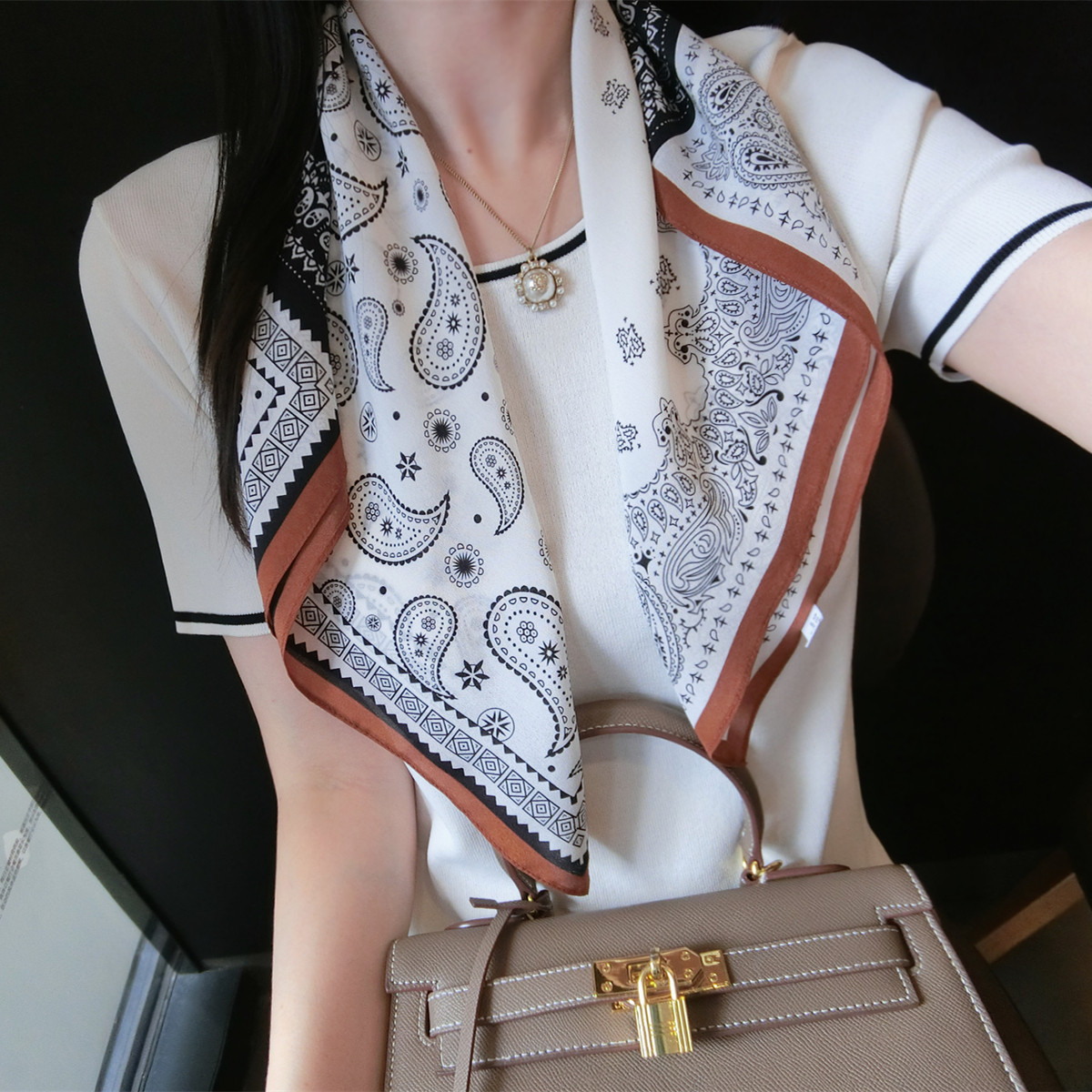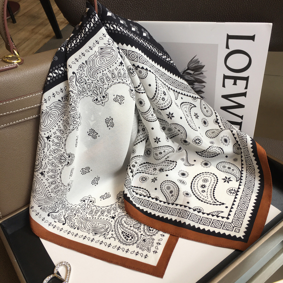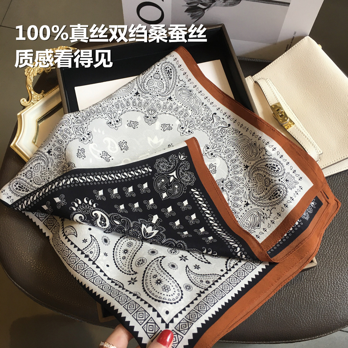 杭州丝绸老钱风腰果花100%桑蚕丝围巾方巾春秋季 百搭真丝双绉丝巾