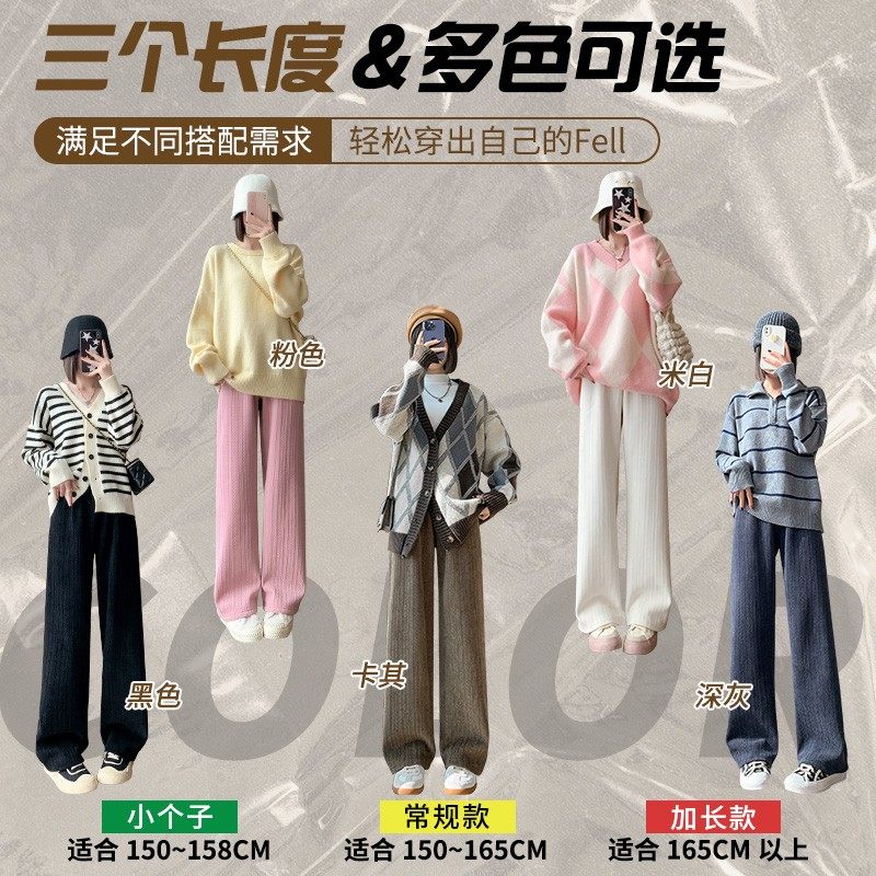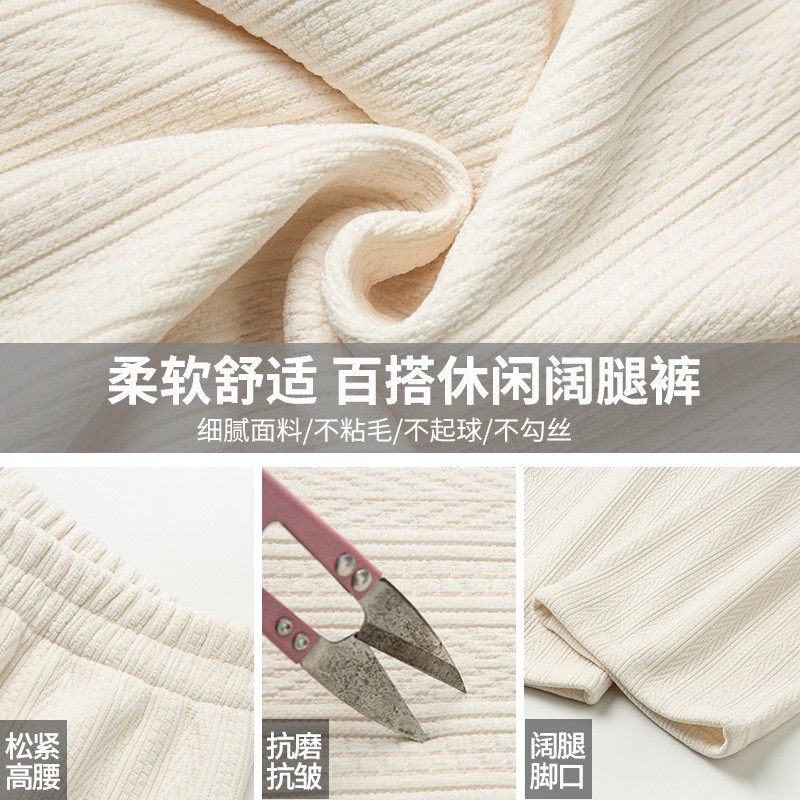 高腰直筒休闲白色裤 麦穗纹雪尼尔阔腿裤 女秋冬加绒加厚2025新款 子