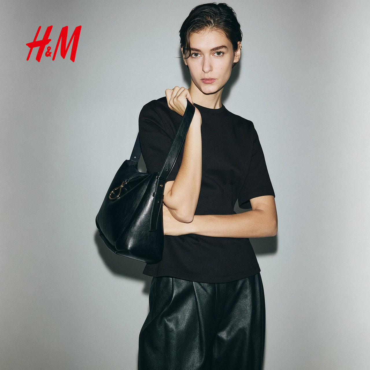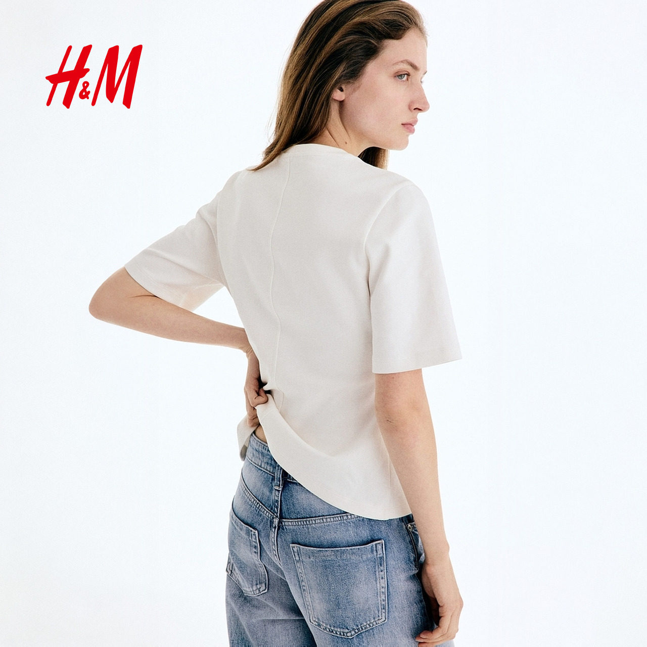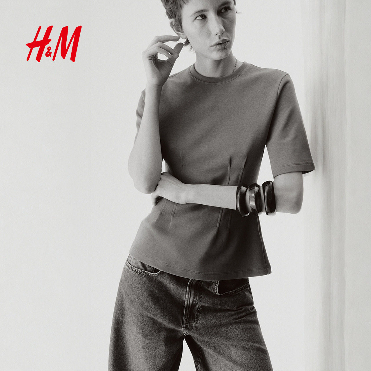 HM女装 1323915 气质内搭收腰双面布T恤潮流打底衫 T恤2026春季 新款