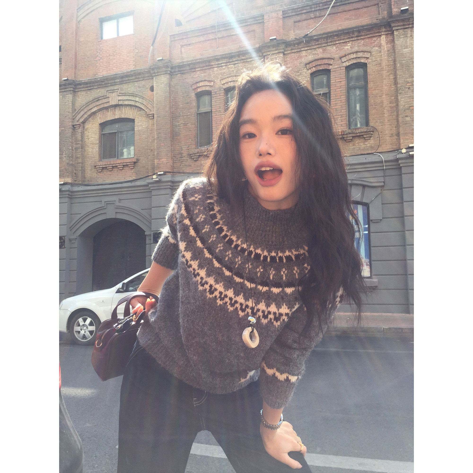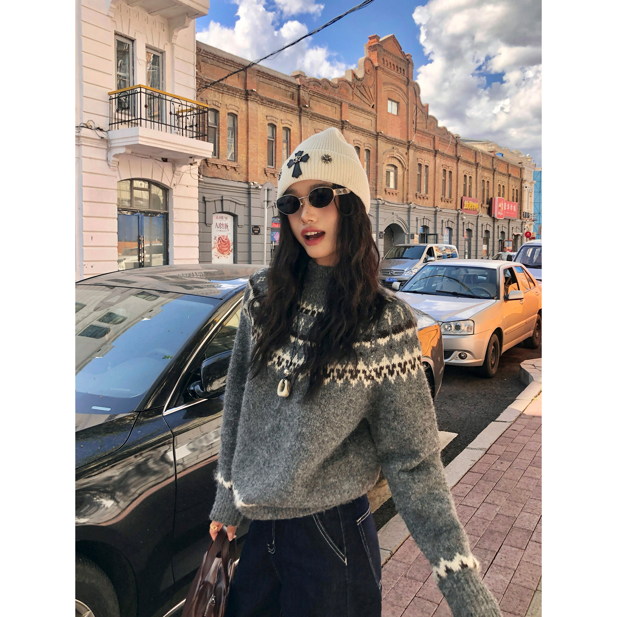 pusumede 挪威秘境 复古费尔岛提花毛衣女宽松慵懒套头针织上衣