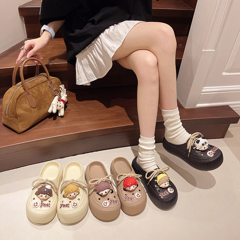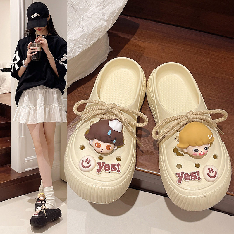 女款 夏季 外穿2025新款 系带厚底洞洞鞋 踩屎感包头拖鞋 防滑凉拖