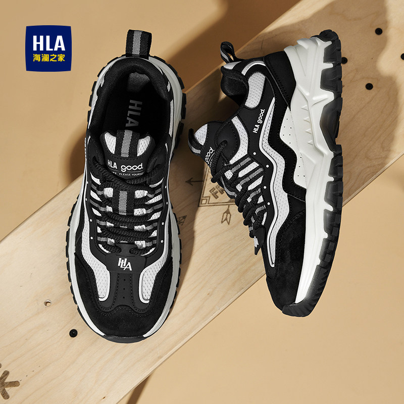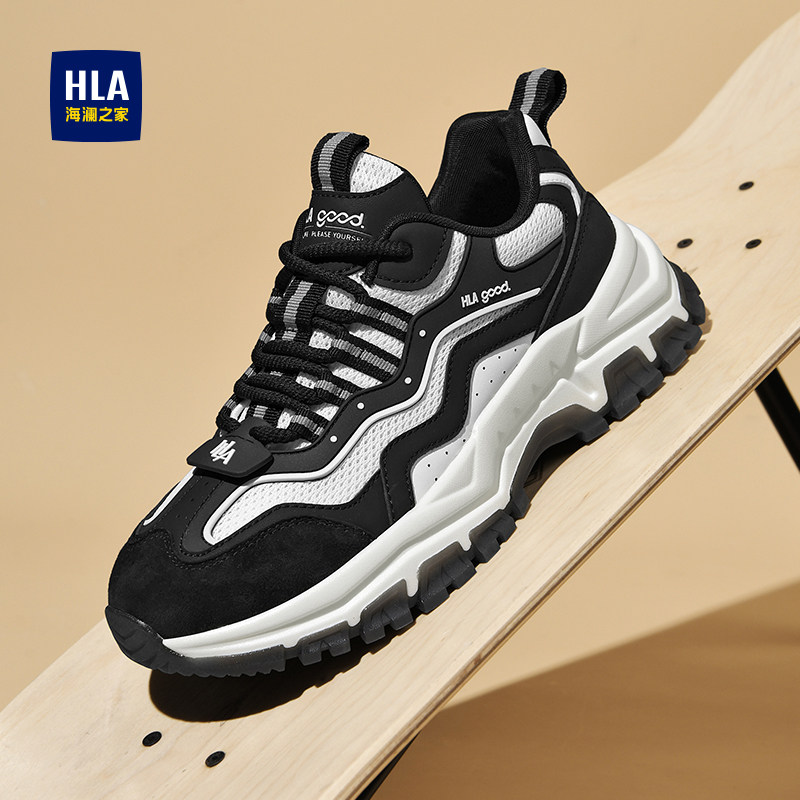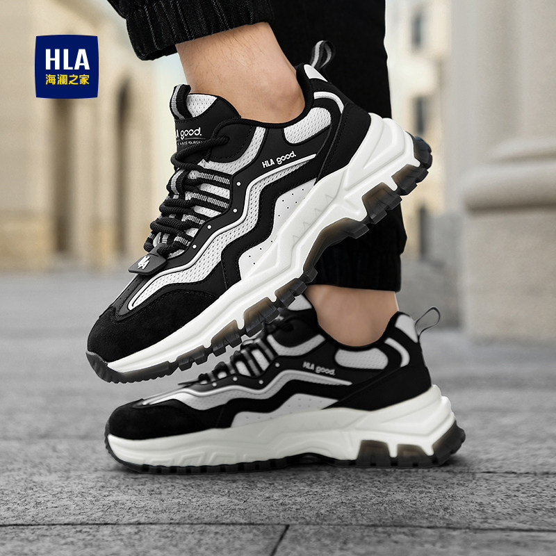海澜之家男鞋 增高运动休闲鞋 新款 男士 HLA 时尚 老爹鞋 黑白熊猫鞋 男