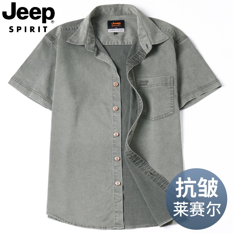 男士 短袖 翻领衬衫 吉普夏季 莱赛尔商务休闲薄款 青年上衣衬衣潮