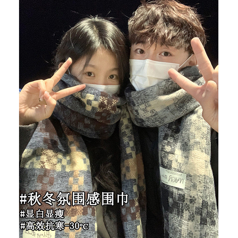 男女学生2025新款 围巾情侣款 一对冬季 秋冬日系韩系氛围感护颈保暖