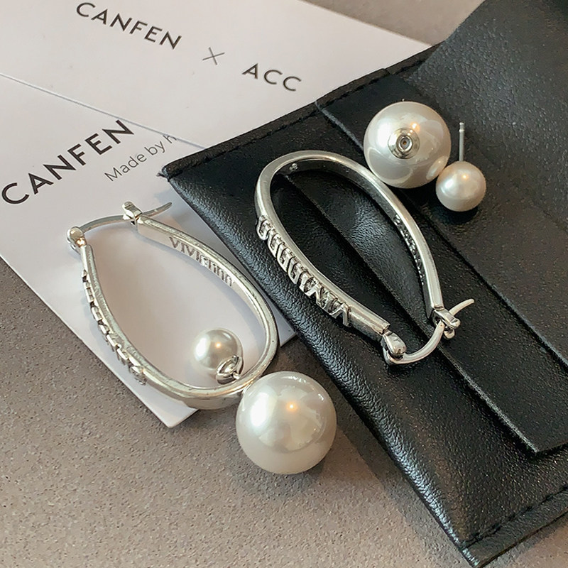 西太后字母耳环2025新款 高级感耳扣轻奢小众设计珍珠耳坠欧美耳饰