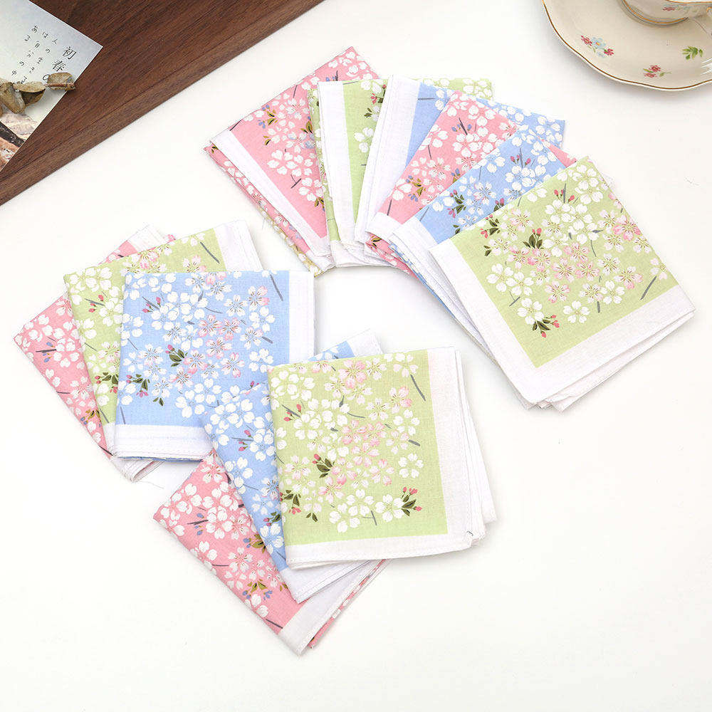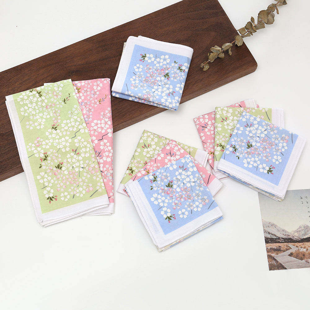 43cm老式 怀旧古风手帕气质优雅樱花朵手绢薄款 柔软舒适手巾棉方巾