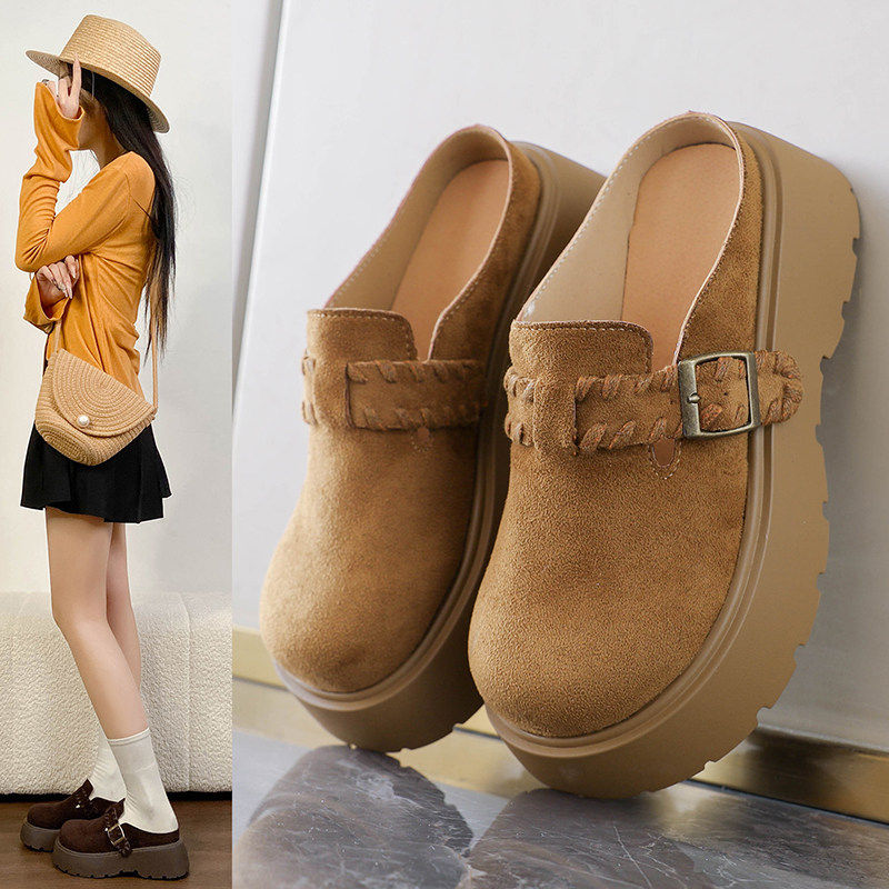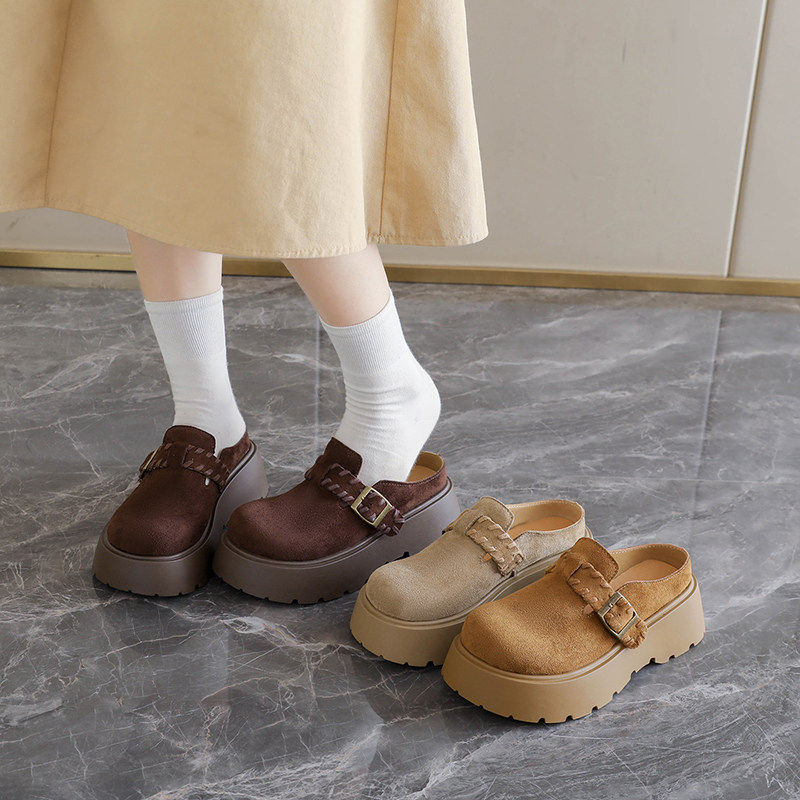 34码 厚底增高勃肯鞋 春季 一脚蹬穆勒单鞋 包头半拖鞋 女外穿2026新款