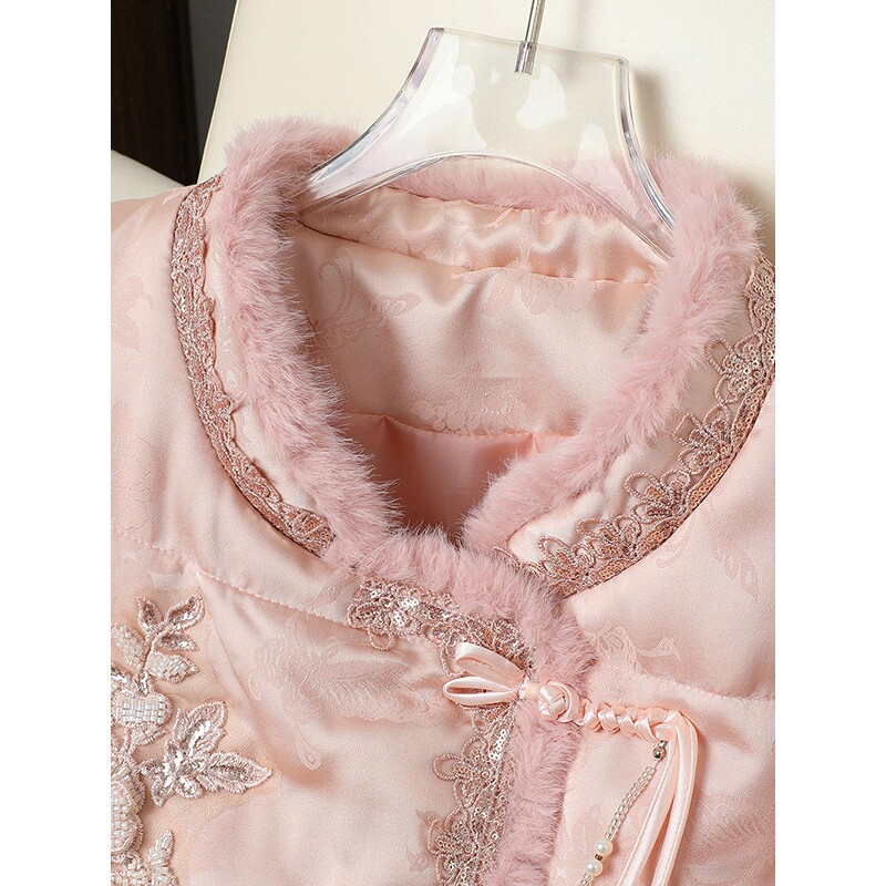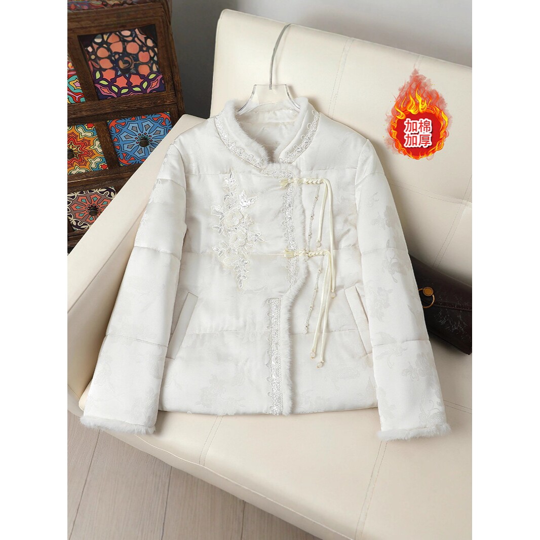 国风棉衣外套女秋冬新款 恒源祥新中式 重工刺绣唐装 加棉保暖棉服气