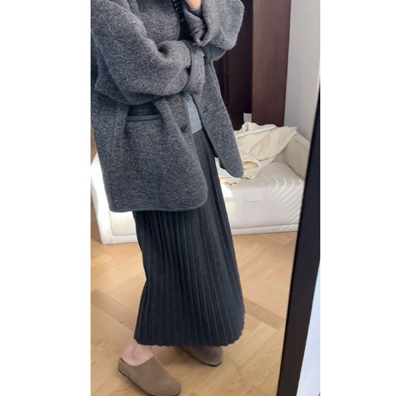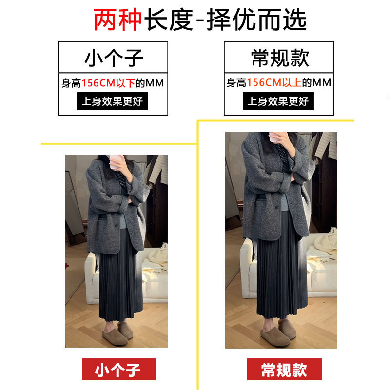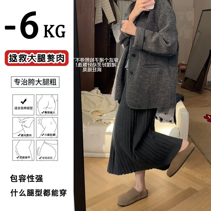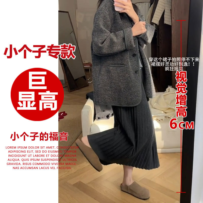 针织半身裙女小个子a字百褶裙2025年新款 秋冬季 加厚伞裙150cm显高