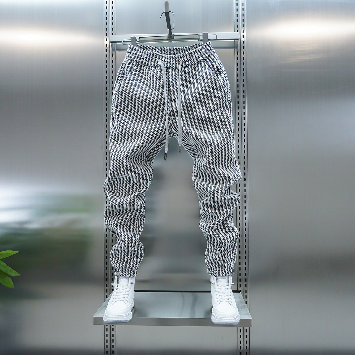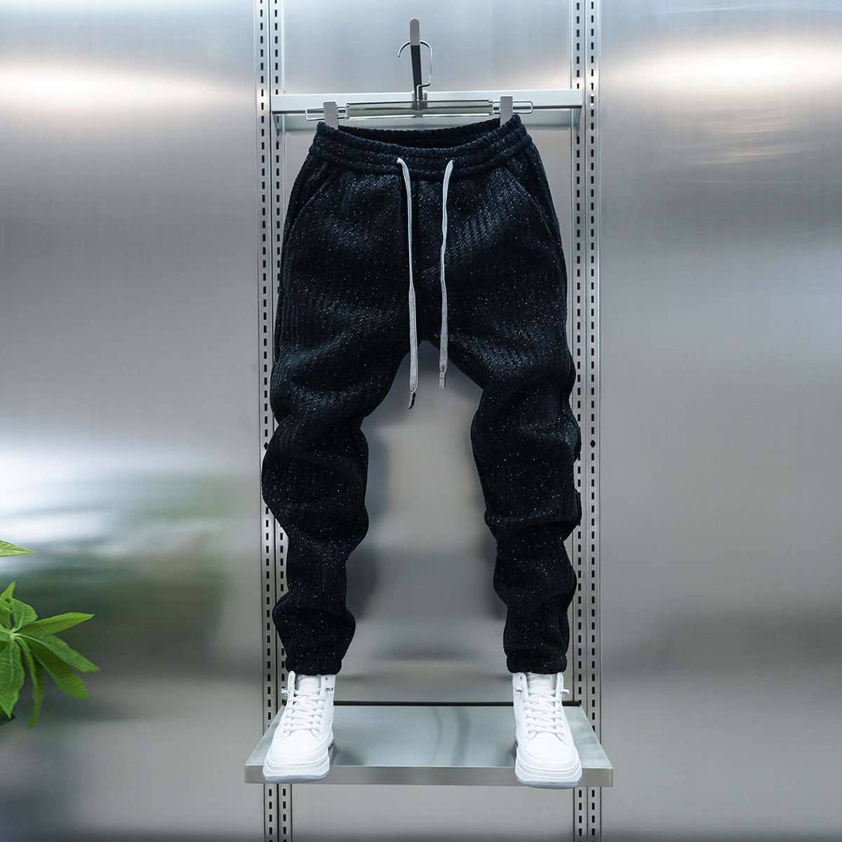 加绒百搭休闲裤 时尚 竖条纹束脚运动卫裤 2025秋冬男士 潮流小脚裤