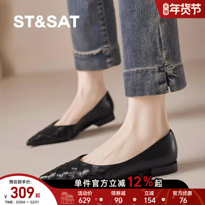平底单鞋 女2025年春新款 瓢鞋 星期六女鞋 一脚蹬通勤百搭编织小皮鞋