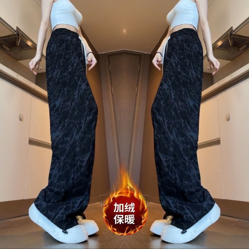 女秋冬款 加绒宽松运动裤 显瘦灯芯绒时尚 清仓便宜休闲裤 泼墨直筒裤