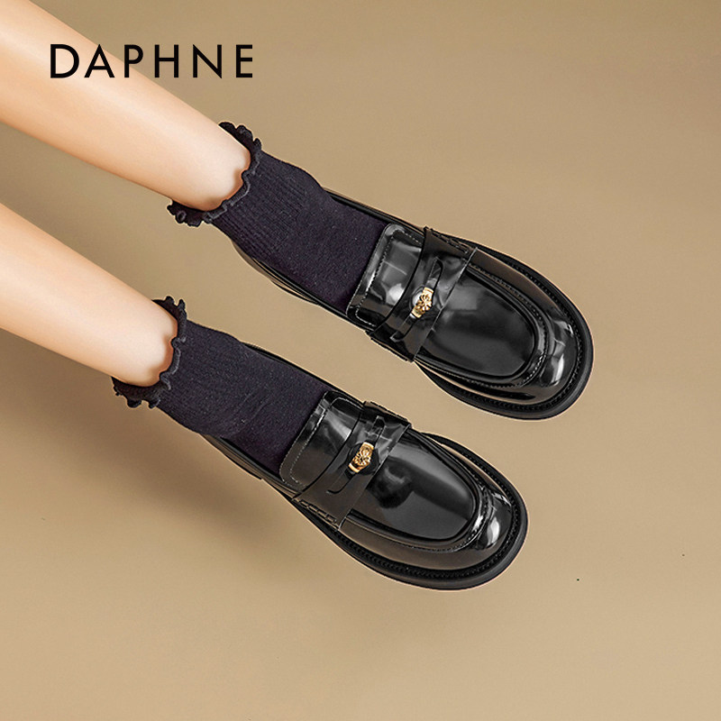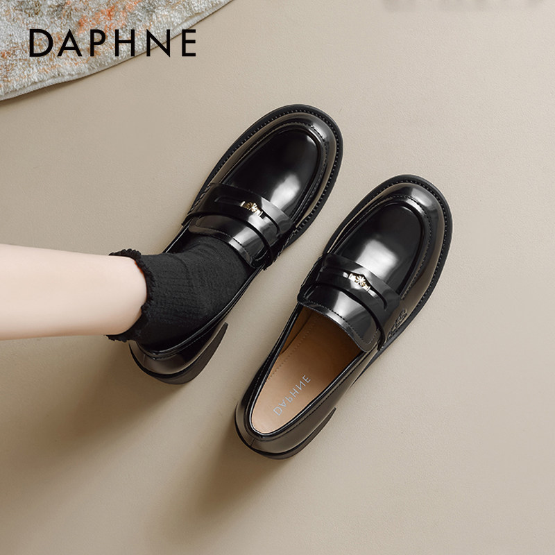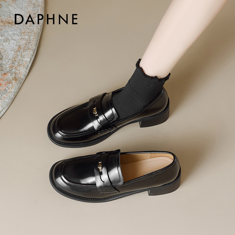 女通勤2026新款 春季 粗跟黑色单鞋 达芙妮金币乐福鞋 英伦风jk小皮鞋