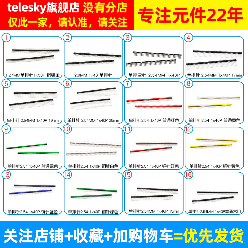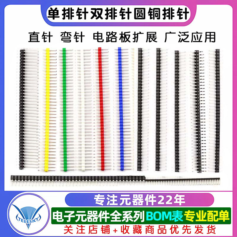 2.00间距1 单排针双排针圆铜排针2.54MM 1.27 40P直针插计弯针pin