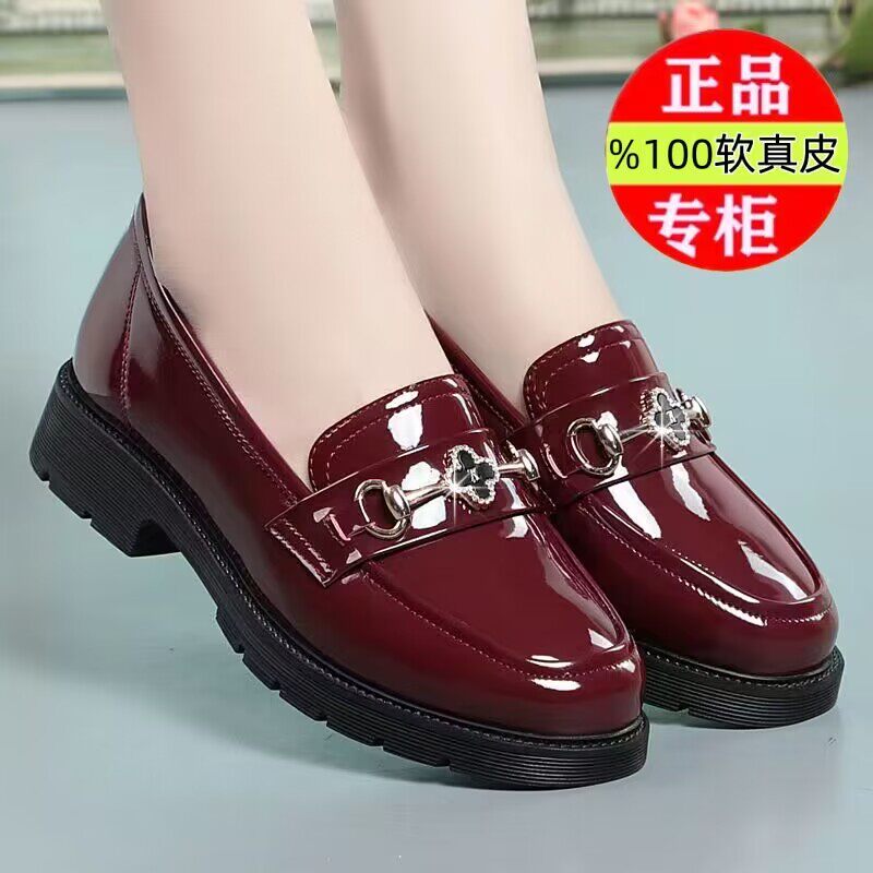 弥尊大东真皮小皮鞋 黑色亮面一脚蹬单鞋 英伦风厚底新款 百搭乐福鞋