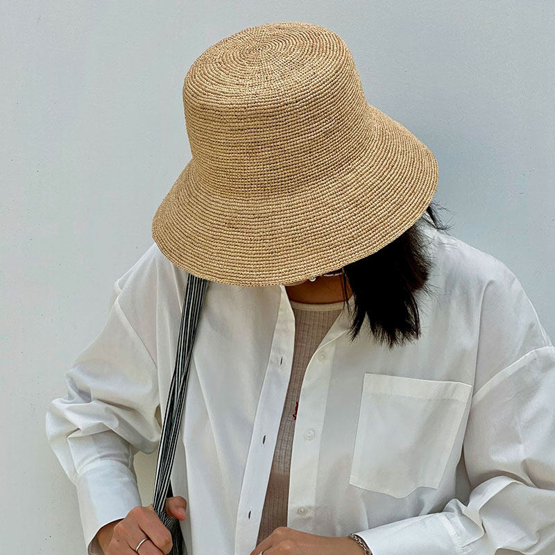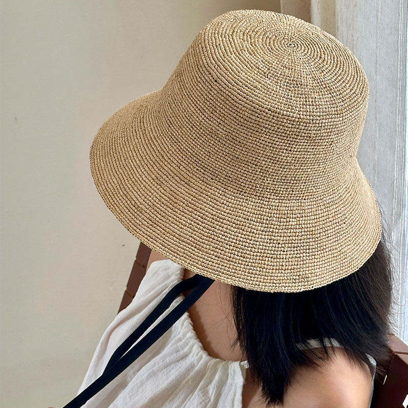 通勤草帽 MAGENA小优雅 纯手工拉菲草休闲遮阳帽 遮脸防晒帽女夏