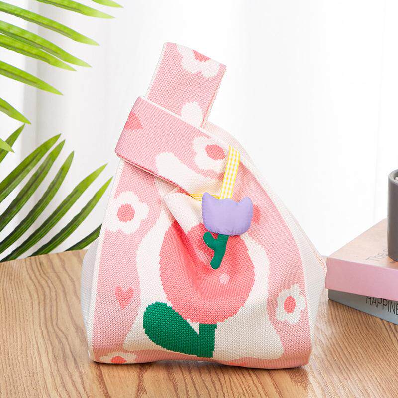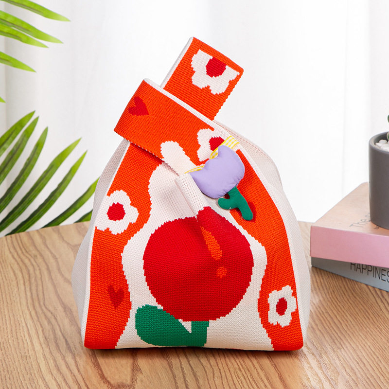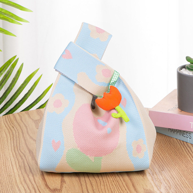 新款 网红手提包女针织毛线水桶包日韩版 百搭手拎休闲托特包盒饭袋