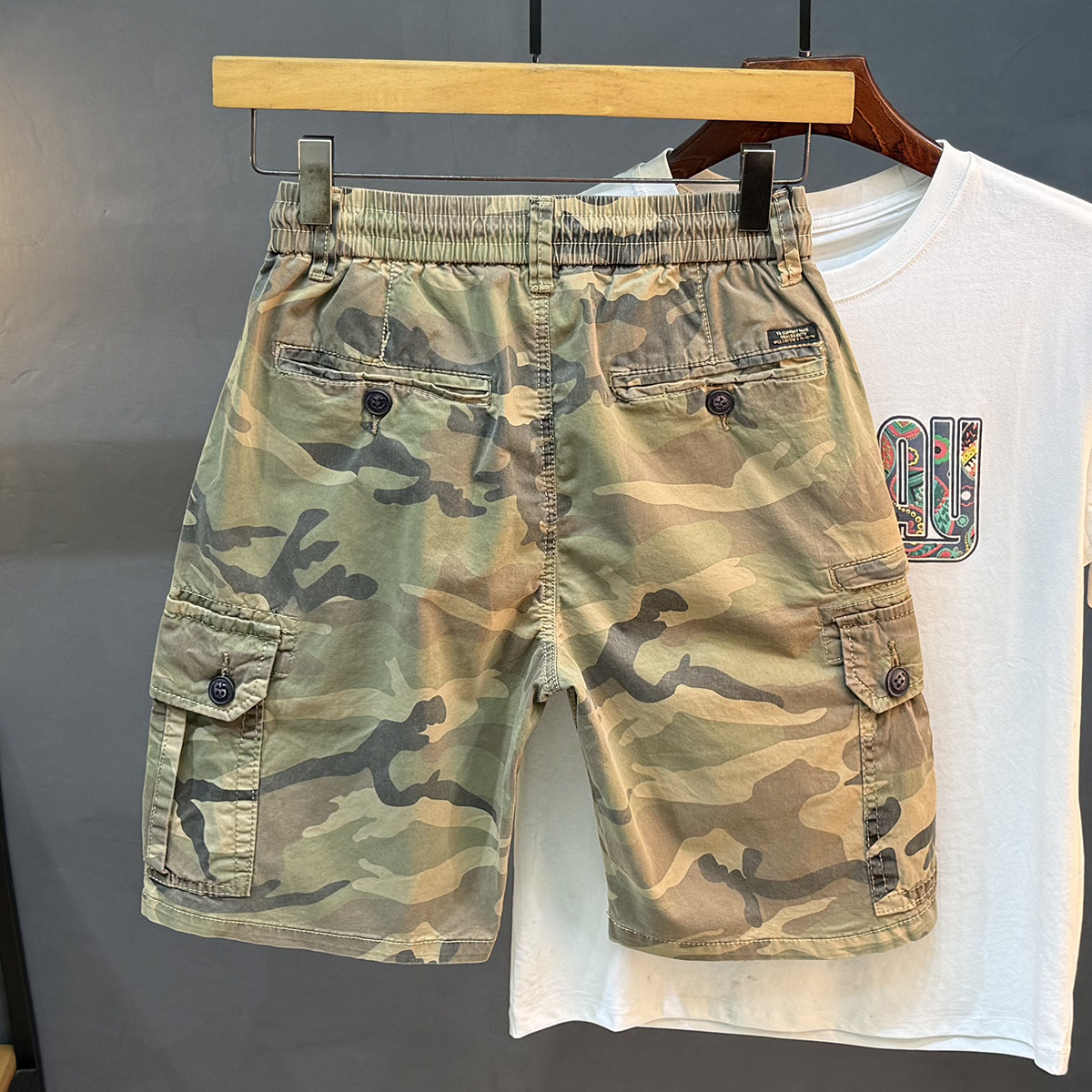 风夏季 大口袋迷彩五分裤 水洗弹力美式 硬汉工装 复古男士 工装 短裤 潮