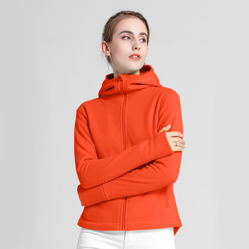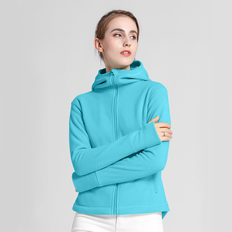 时尚 春秋防风保暖不起球防静电连帽抓绒卫衣女开衫 外套户外修身 潮