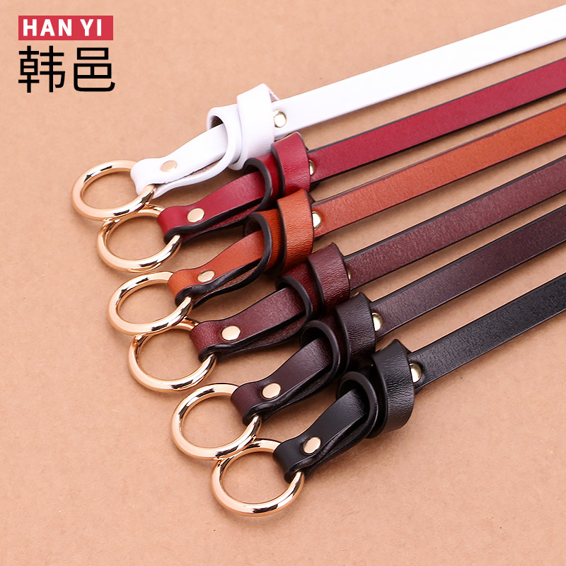 皮带女简约百搭真皮牛皮圆环扣细腰带女配裙子装 饰韩国版 学生文艺