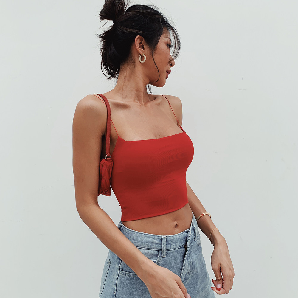ITSNIKAR红色吊带背心女欧美平口抹胸新款 可拆卸带胸垫裹胸外穿