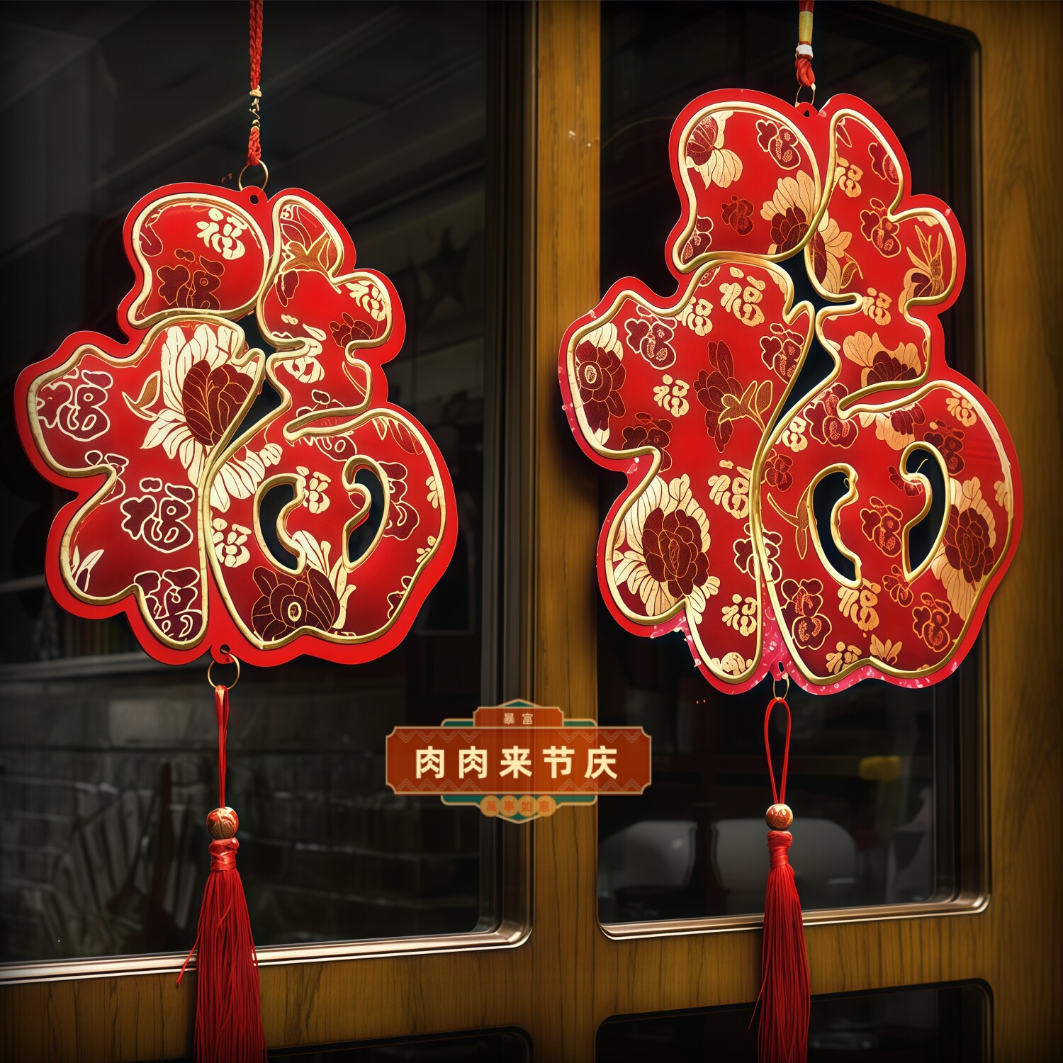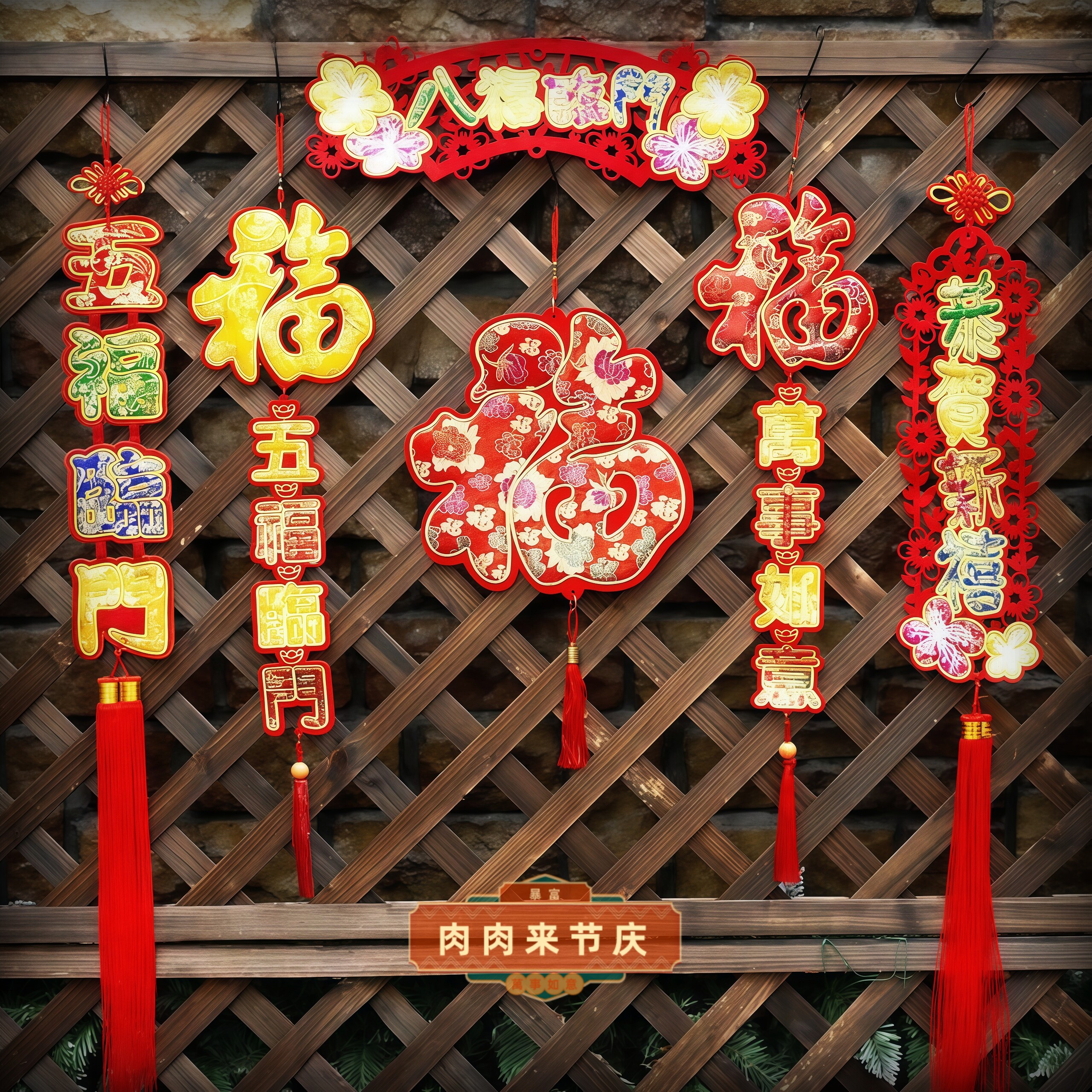 织锦福字四字对联刺绣挂件新年装 饰挂件新春挂饰布置装 扮店铺橱窗